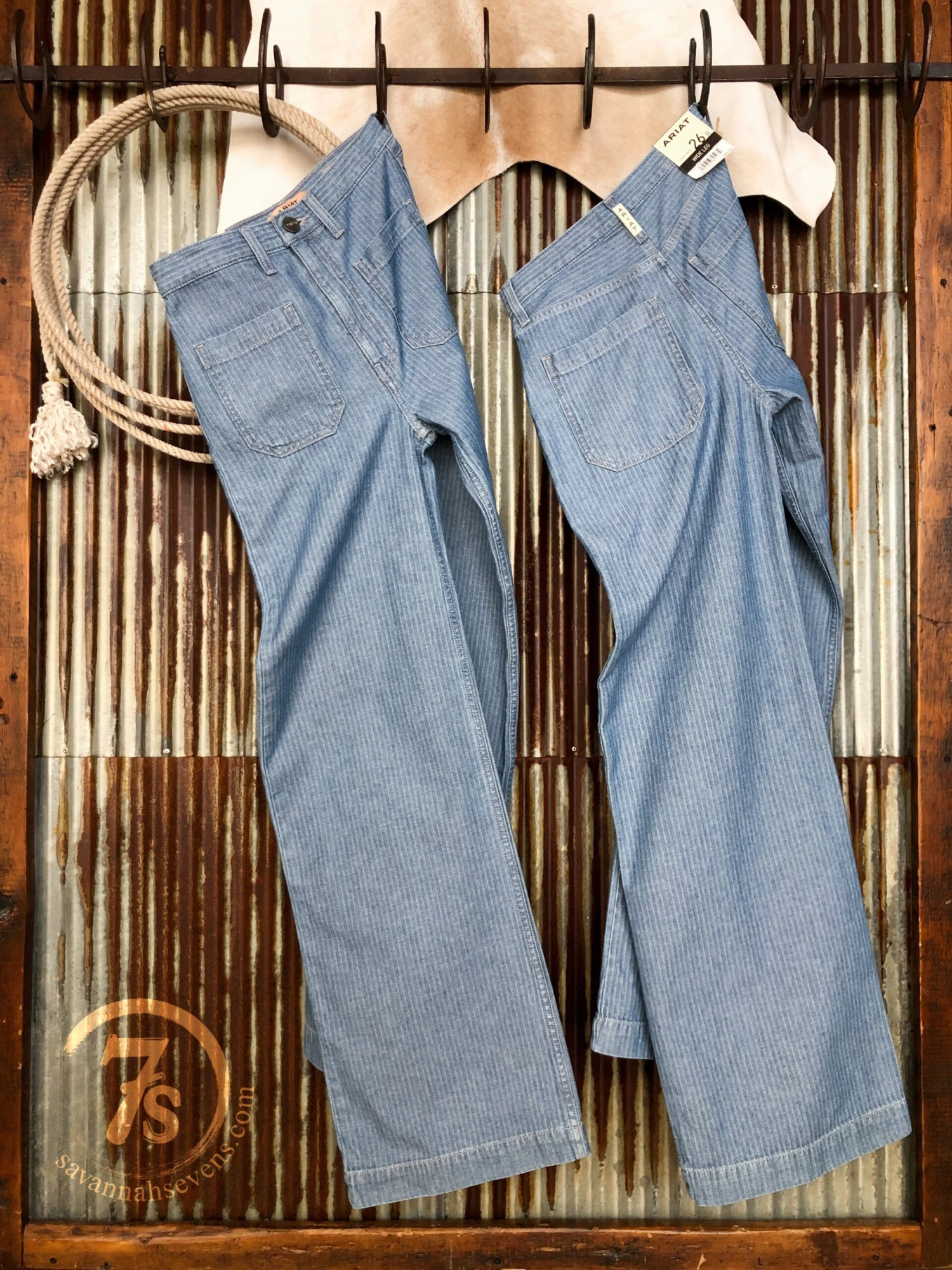 **Our owner typically wears a size 26 in Ariat denim, a size 26 in this style, and wears a size 26 Sevens for all Mankind Dojo, for comparison**