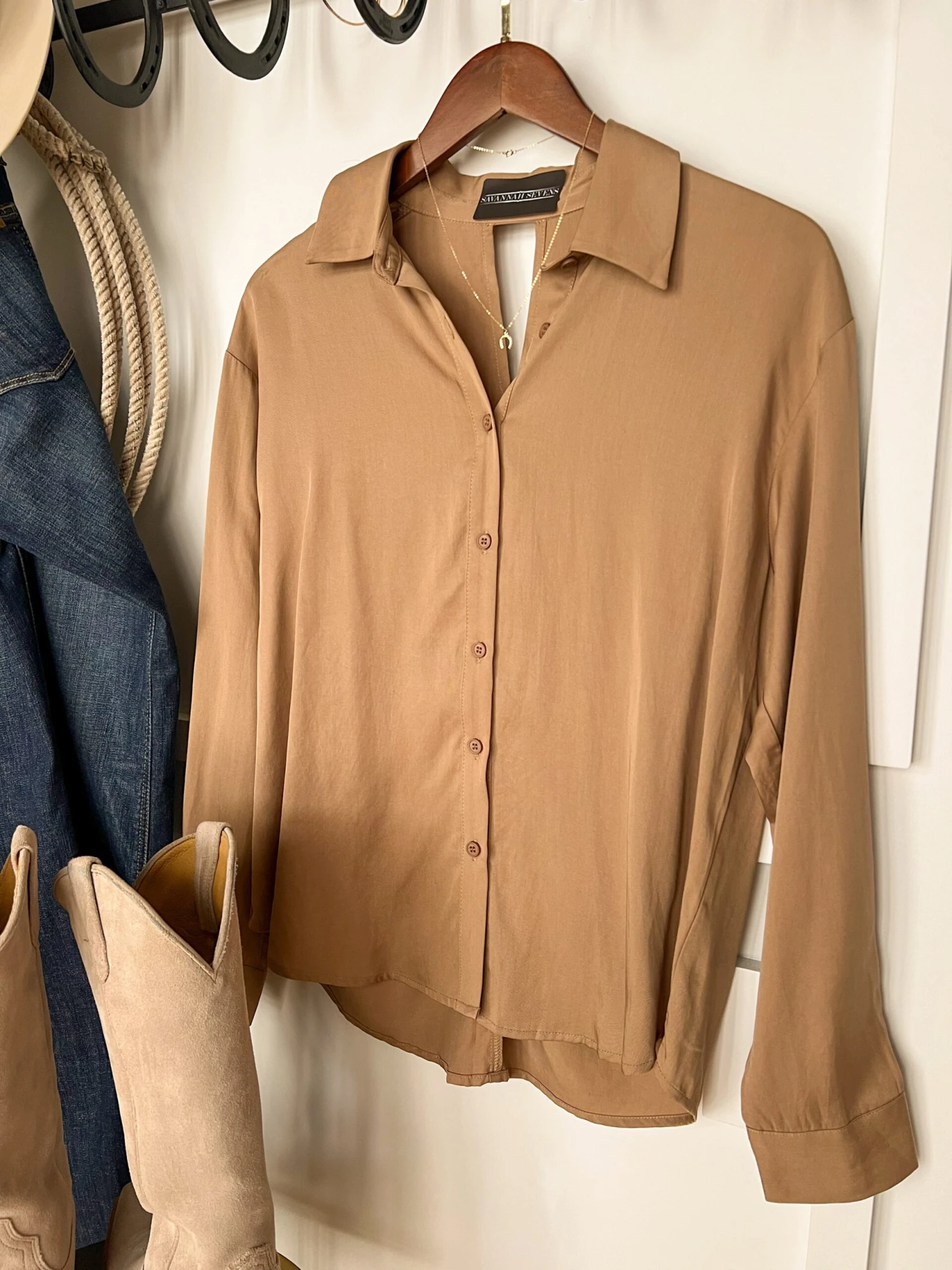 - Toasted coconut long sleeve summary up tencel top.