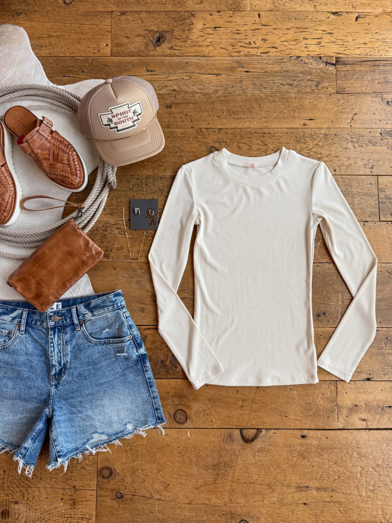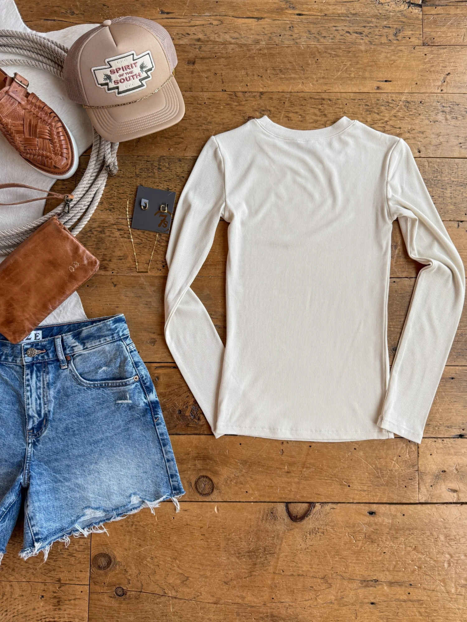 - Cream long sleeve ribbed top.