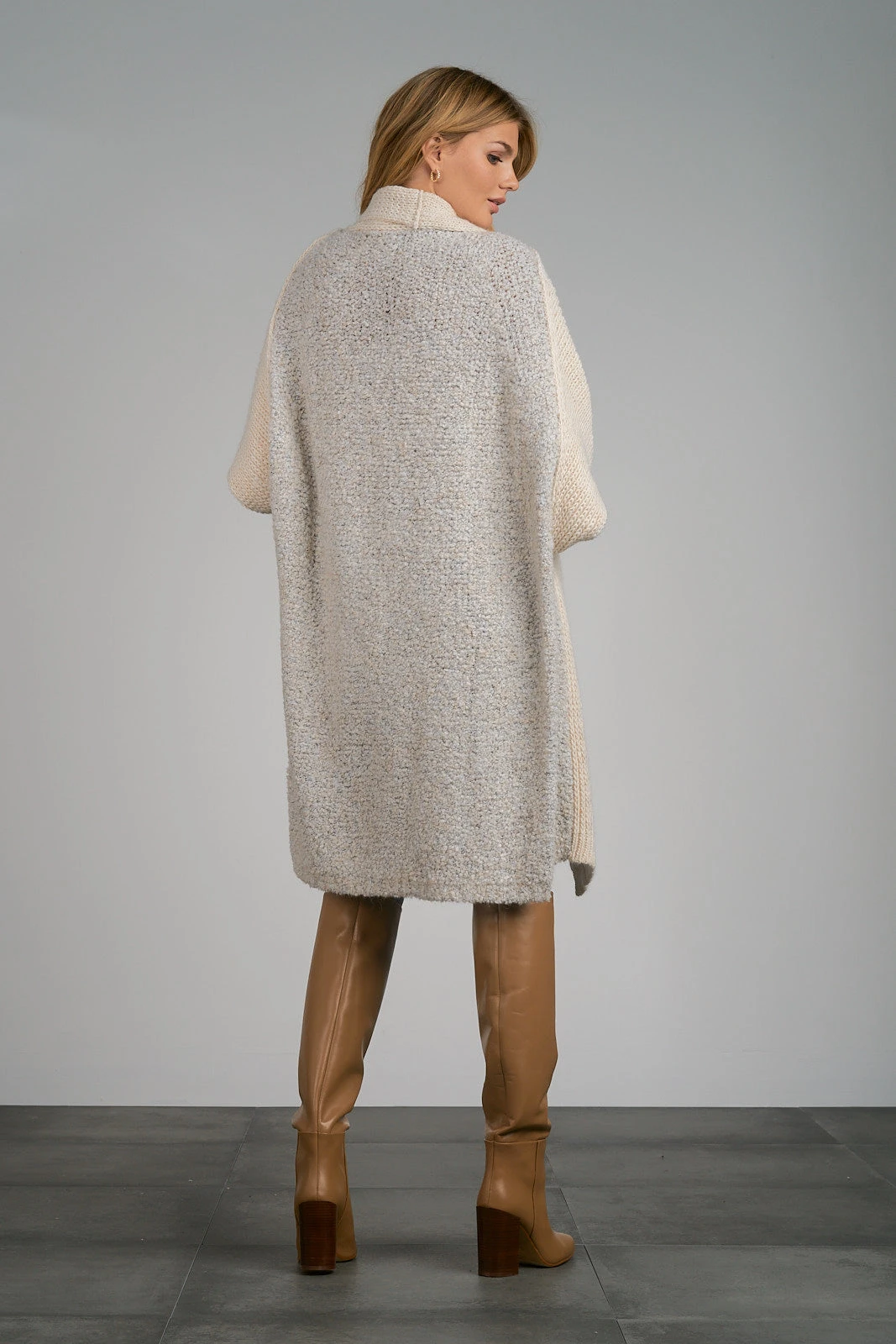 - Ivory and heather grey wool knit long cardi.
