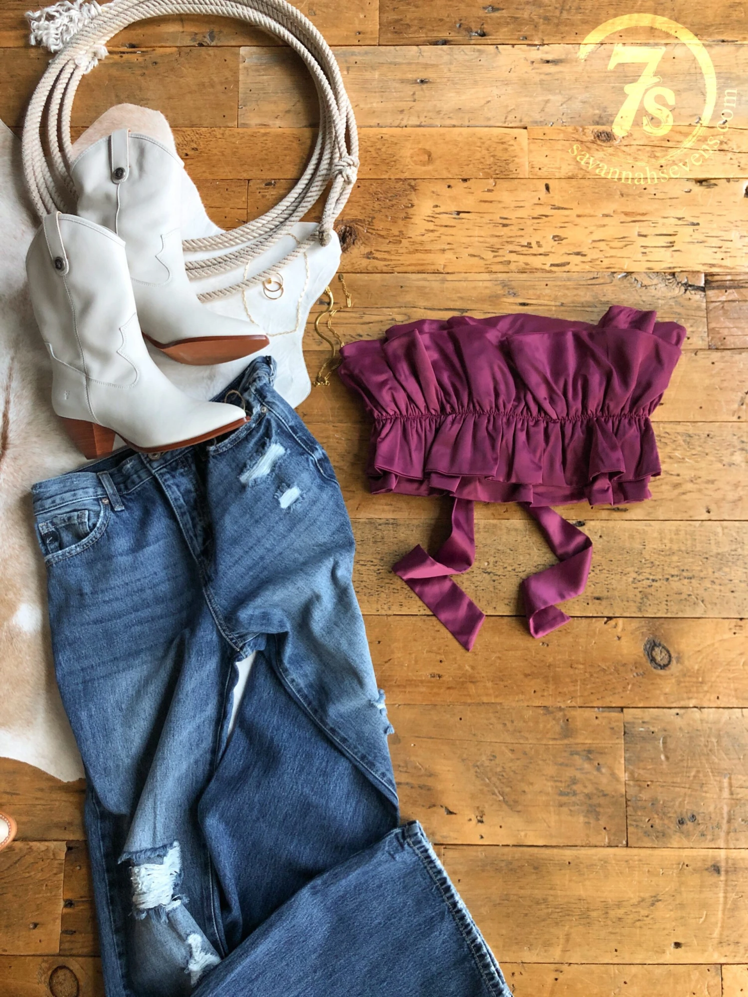 - Shown styled with The Ladue High Rise 90’s Wide Leg Jean, The Cullen boots, Aguila Necklace, Genoa Bracelet, Lamoille Bracelet, and Posen Earrings.