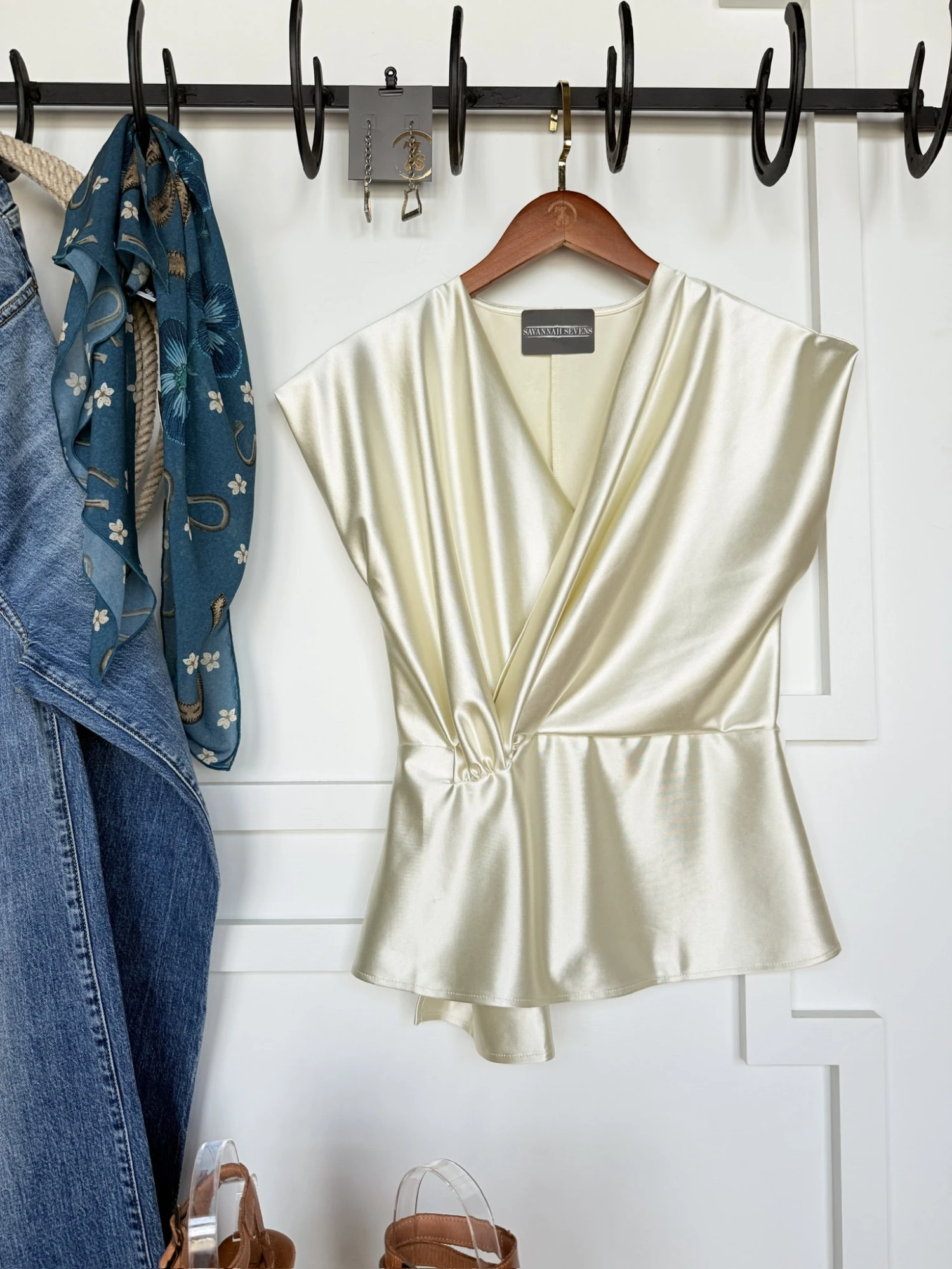- Champagne sleeveless top.