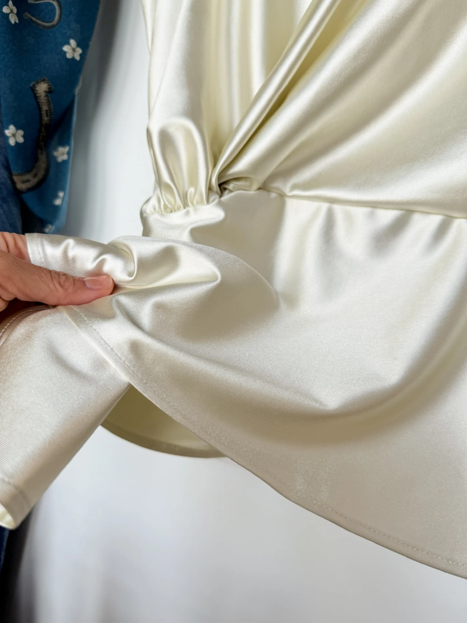 - Soft stretchy silk like fabric with a sheen.