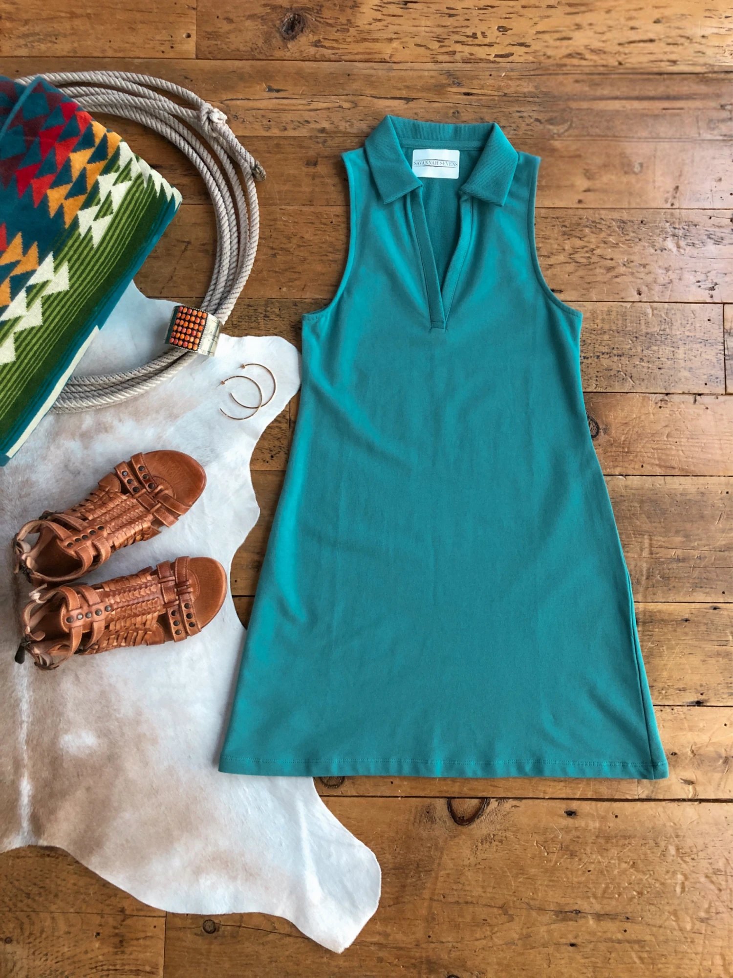 - Shown styled with The Dacono sandals, Rialto Cuff, Los Cerrillos Earrings, and Century Harding Spa Towel.