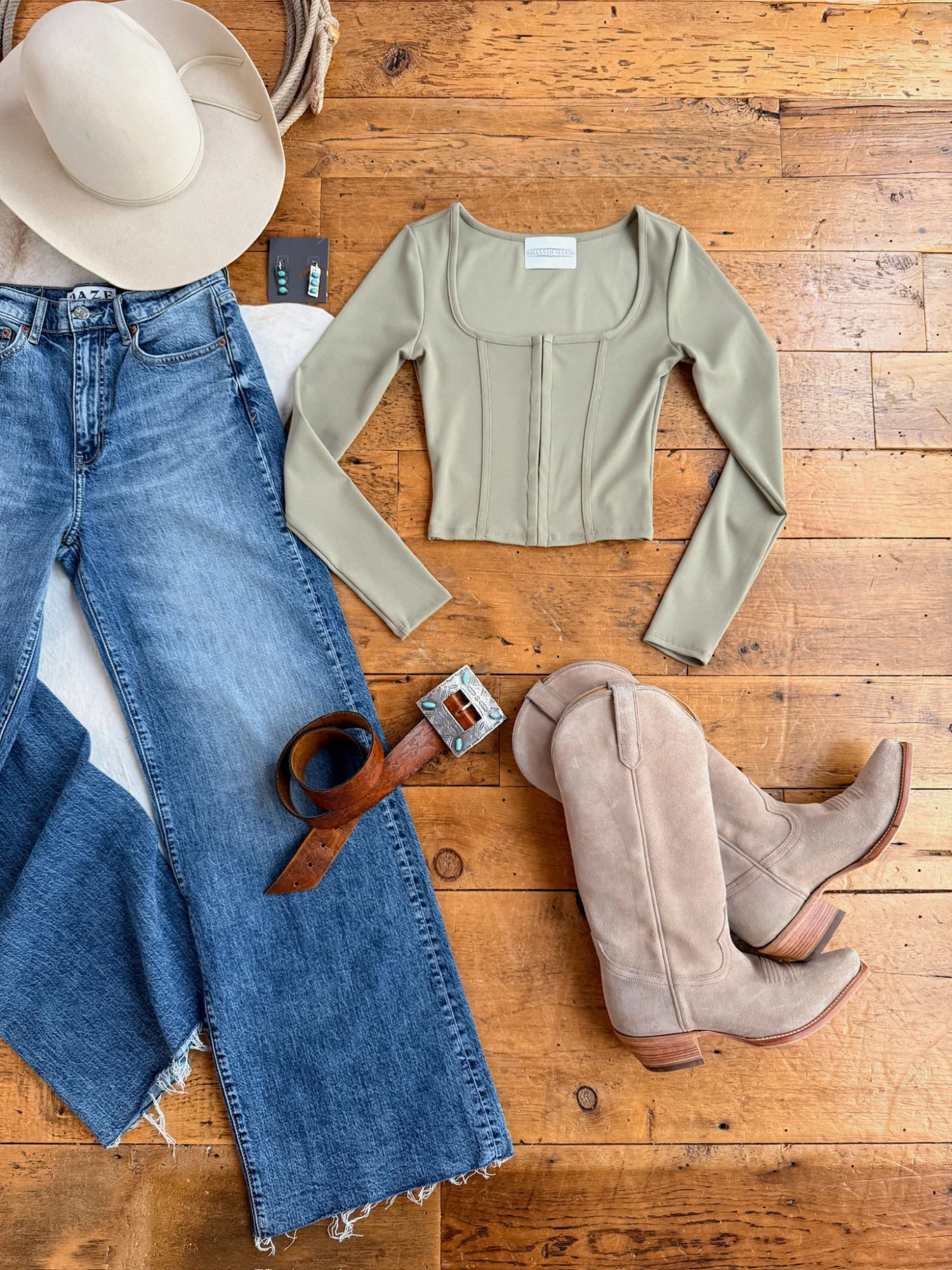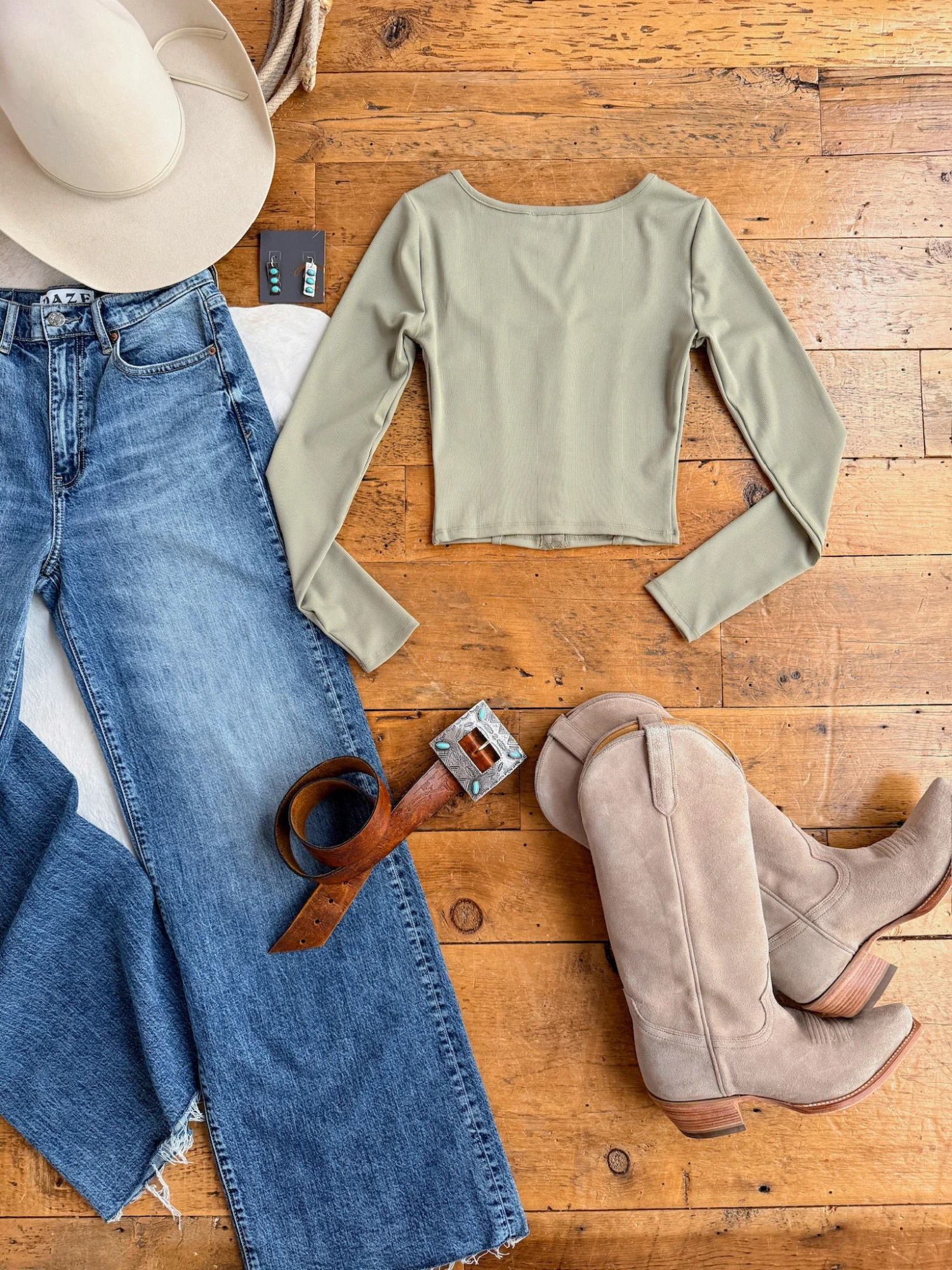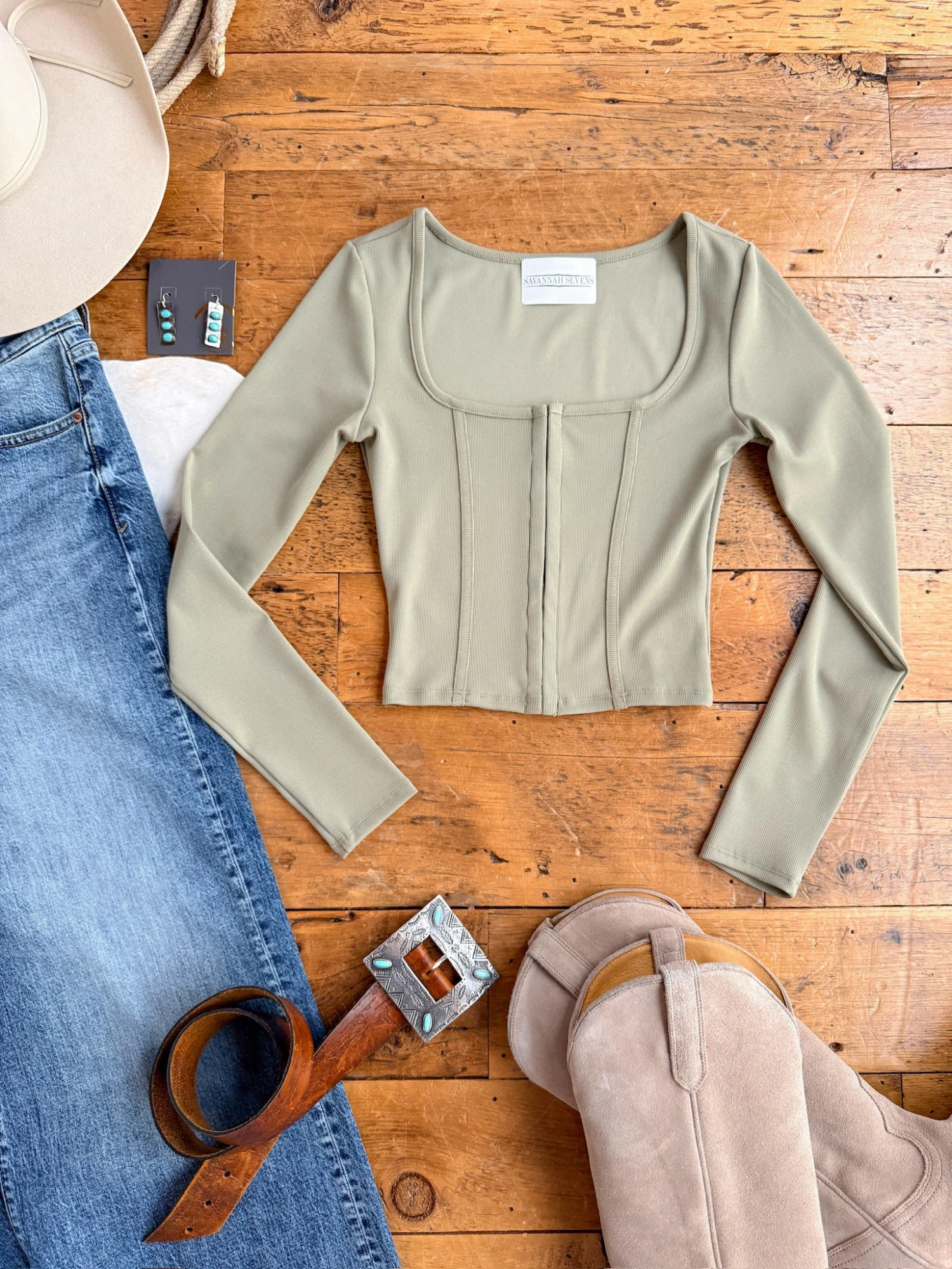 - Sage ribbed long sleeve crop top.