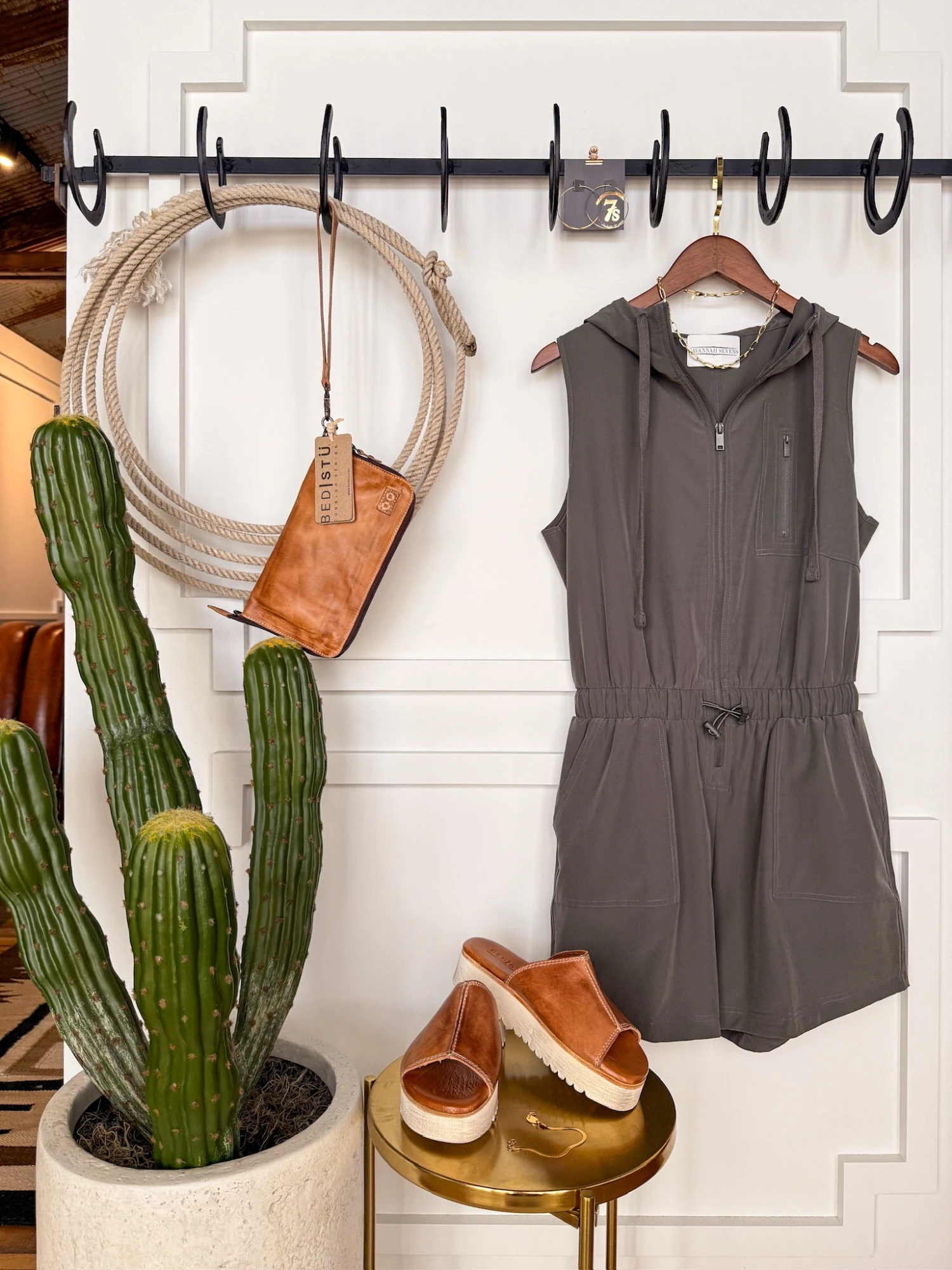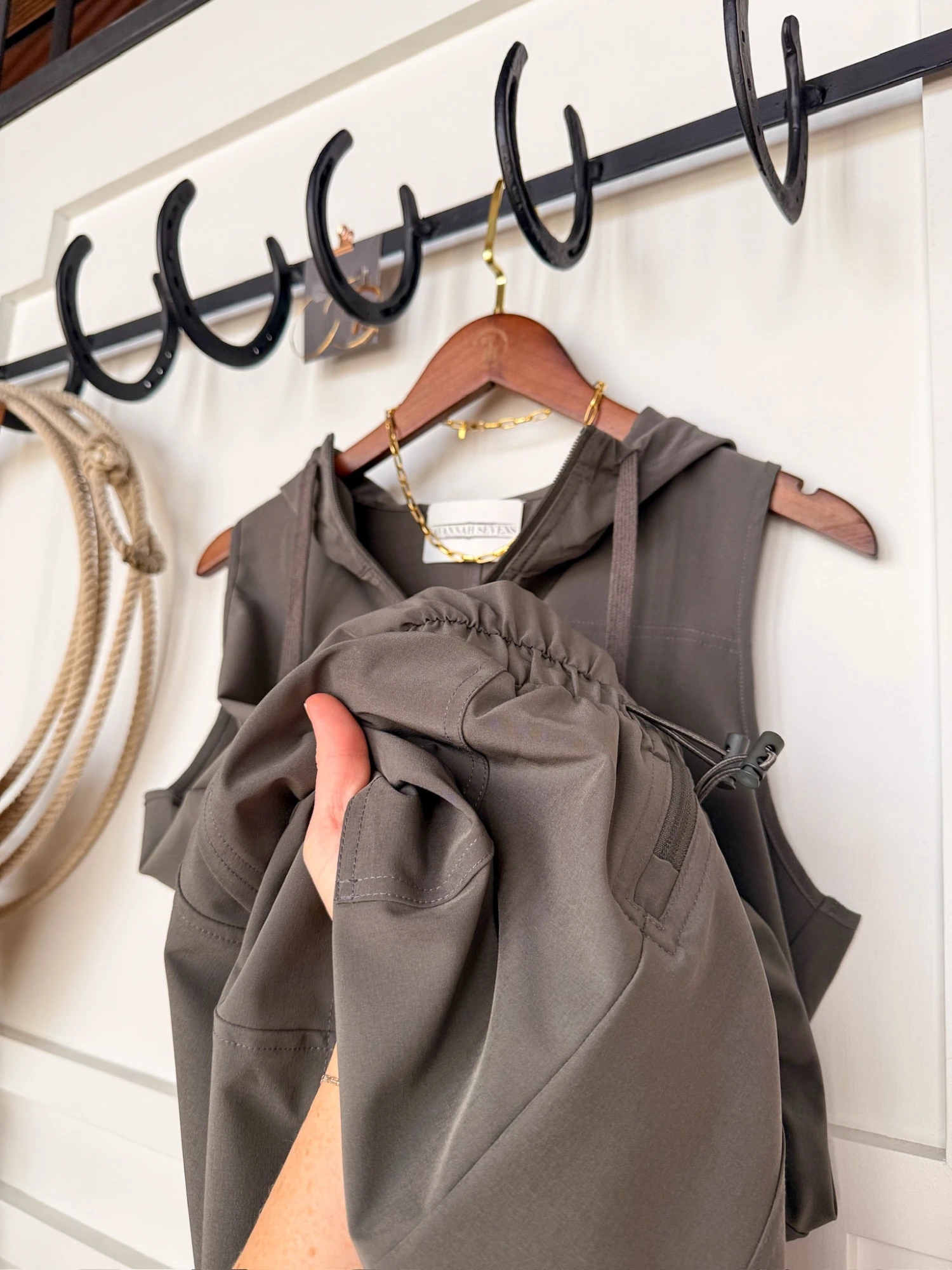- Slate sage sleeveless hooded romper.