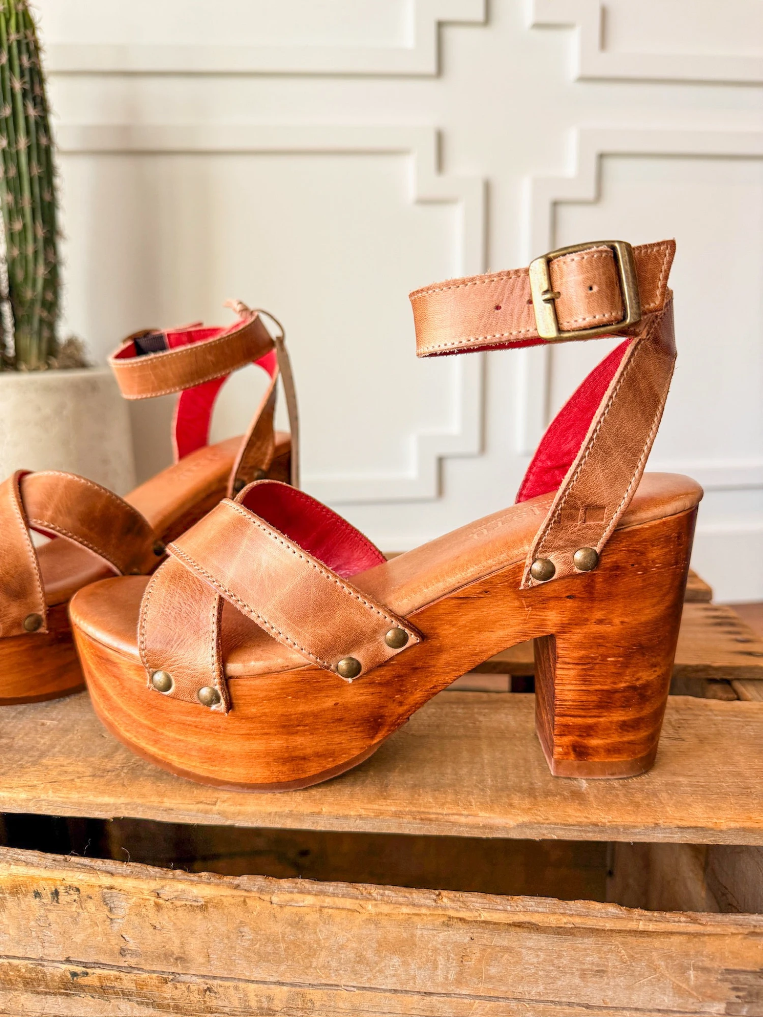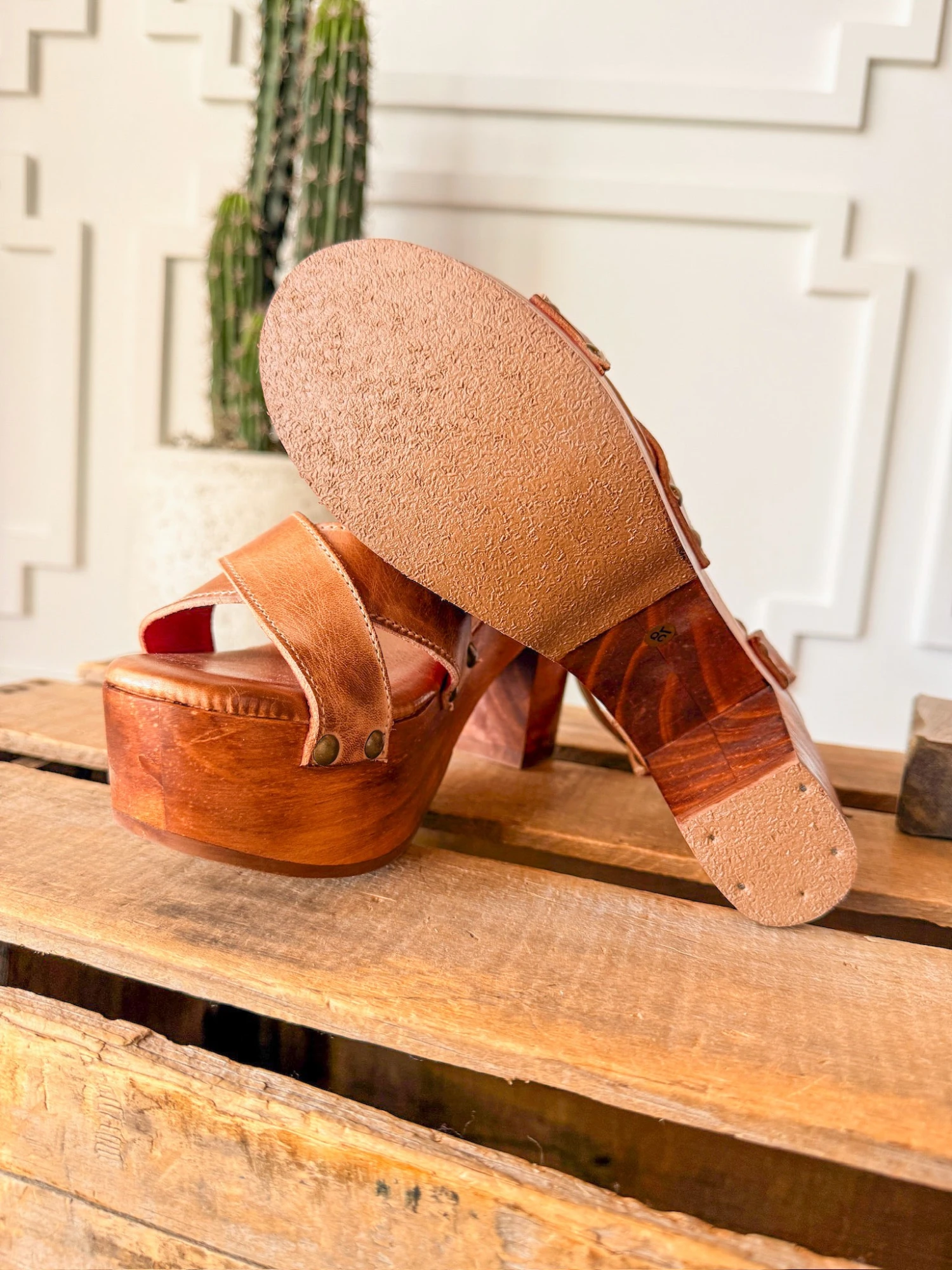 - 3.5″ wooden heel, 1.5″ wooden platform.