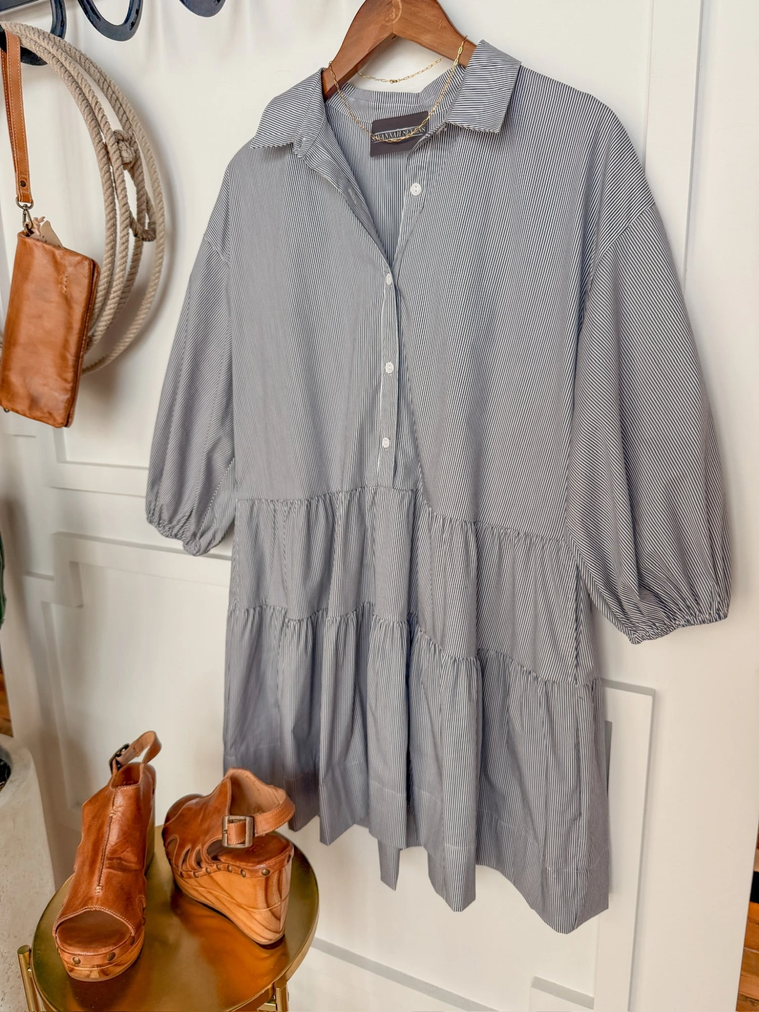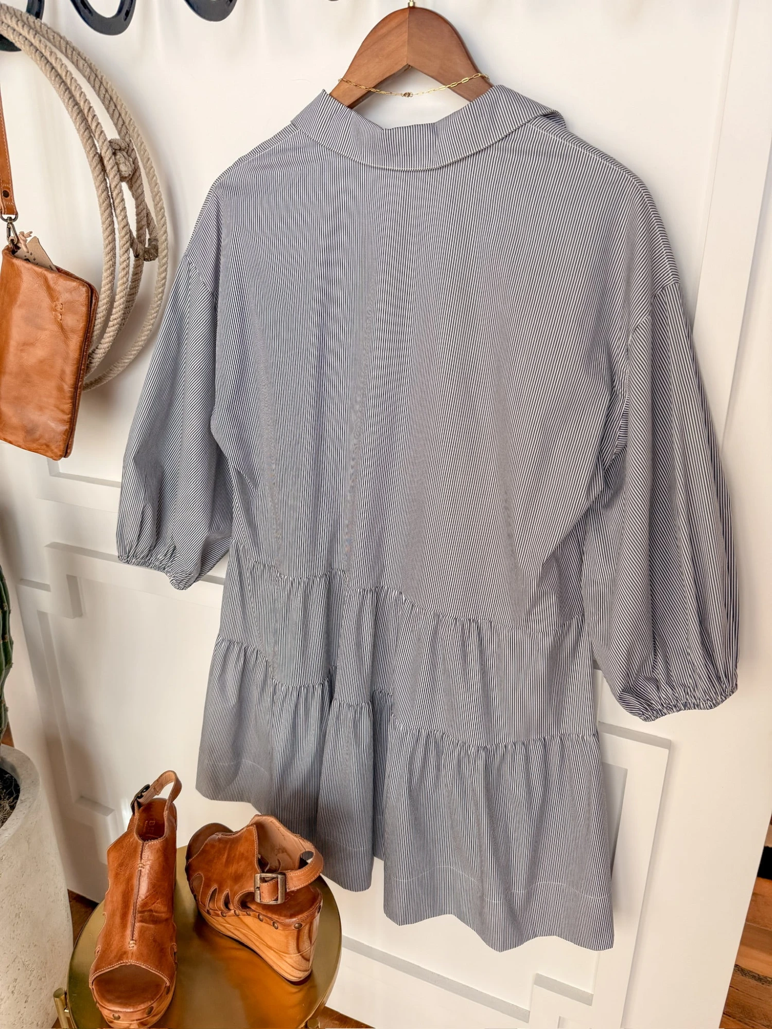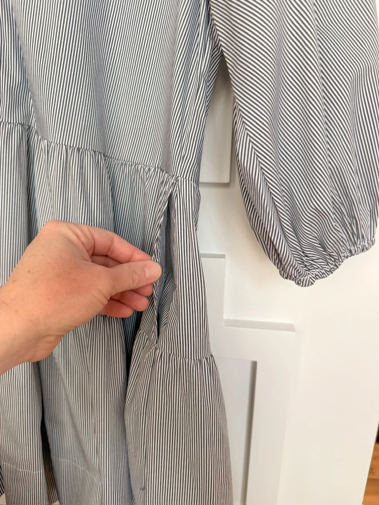 - Pinstripe half sleeve half summary dress.