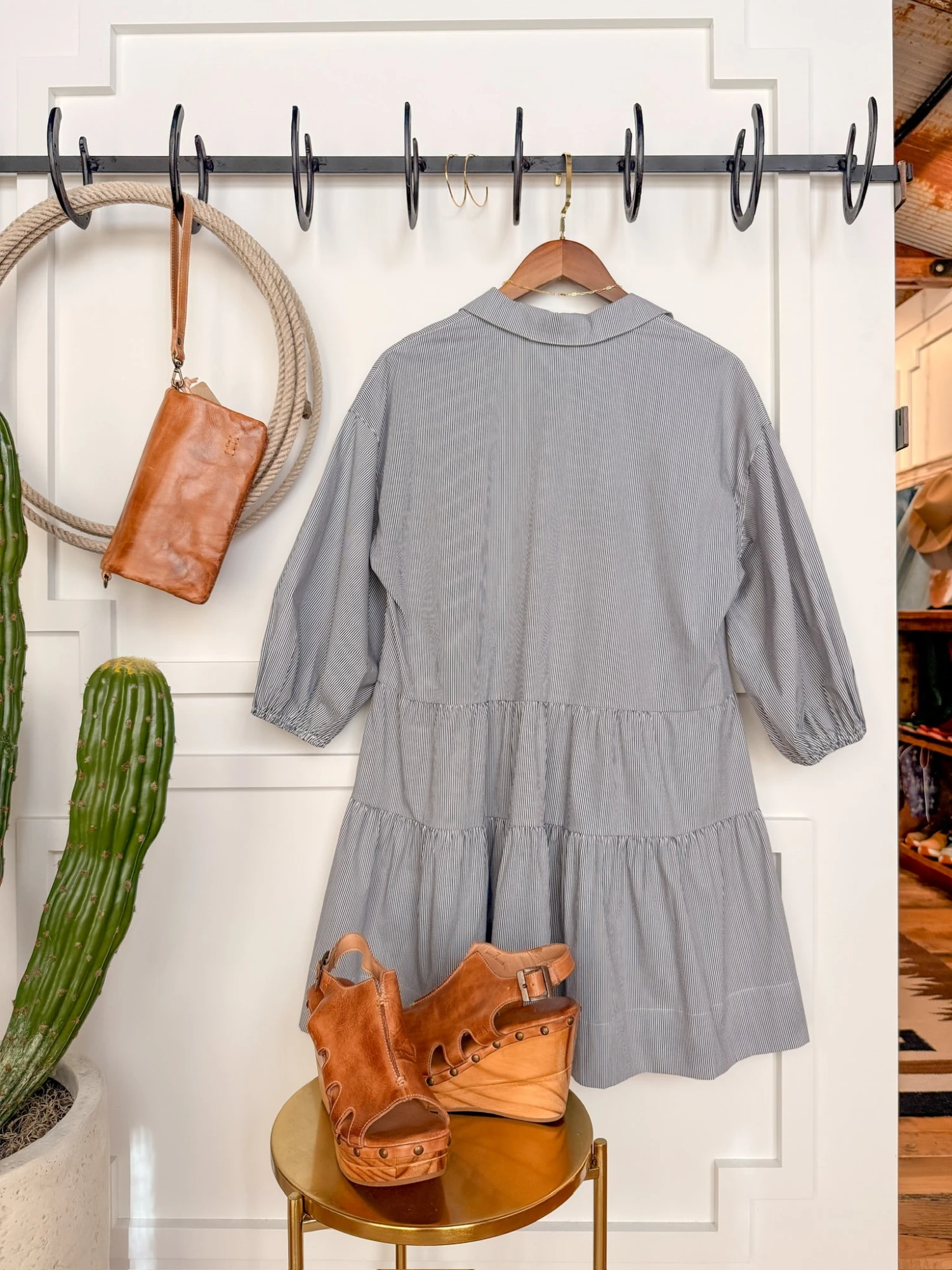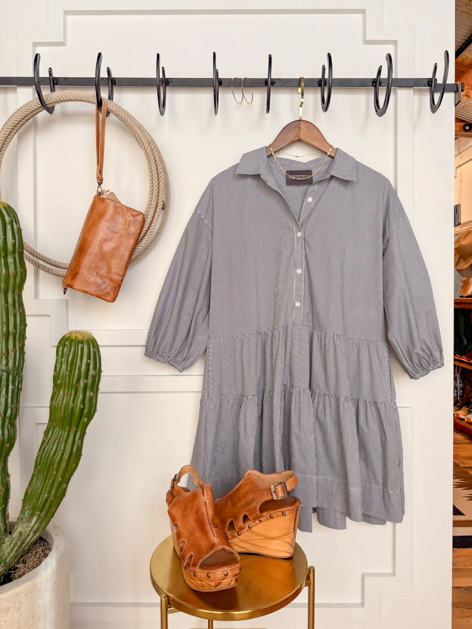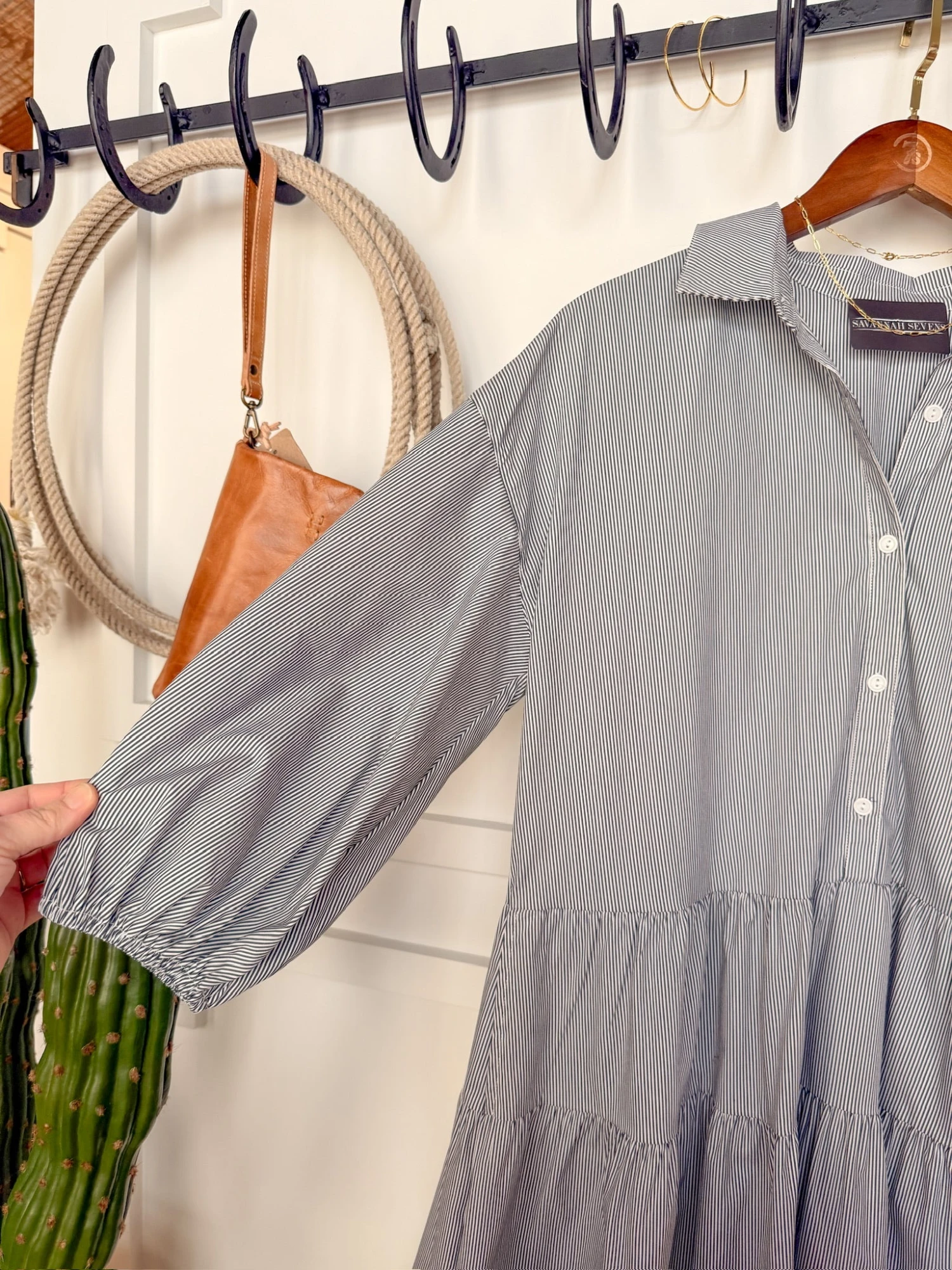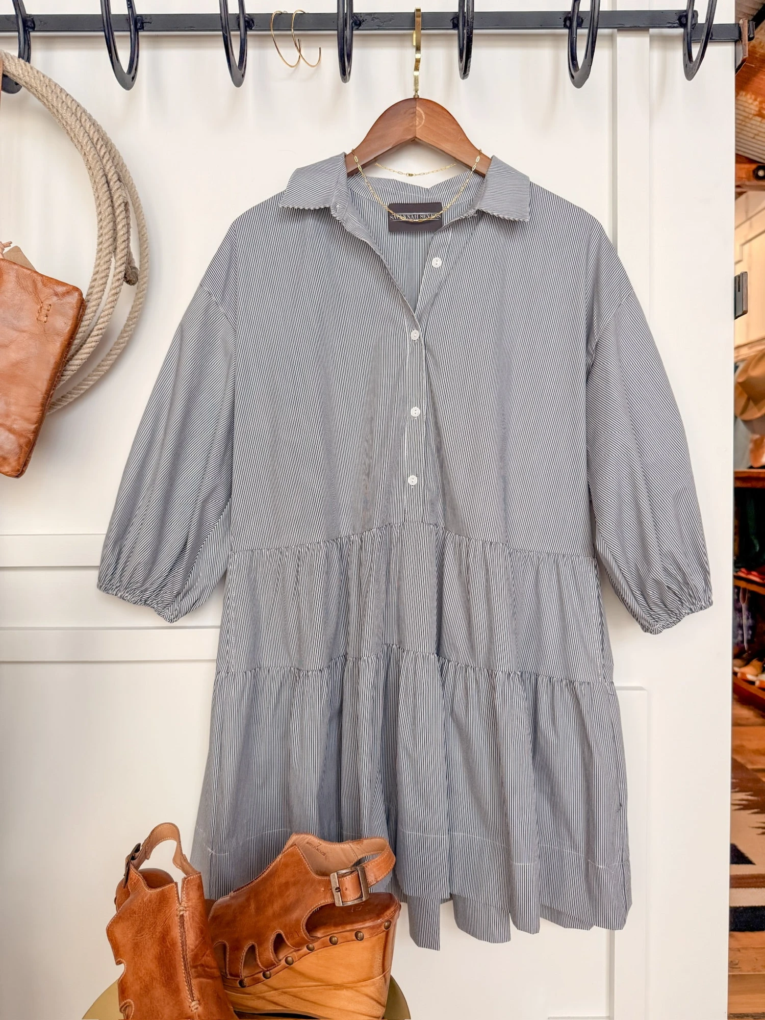 - Pinstripe half sleeve half summary dress.