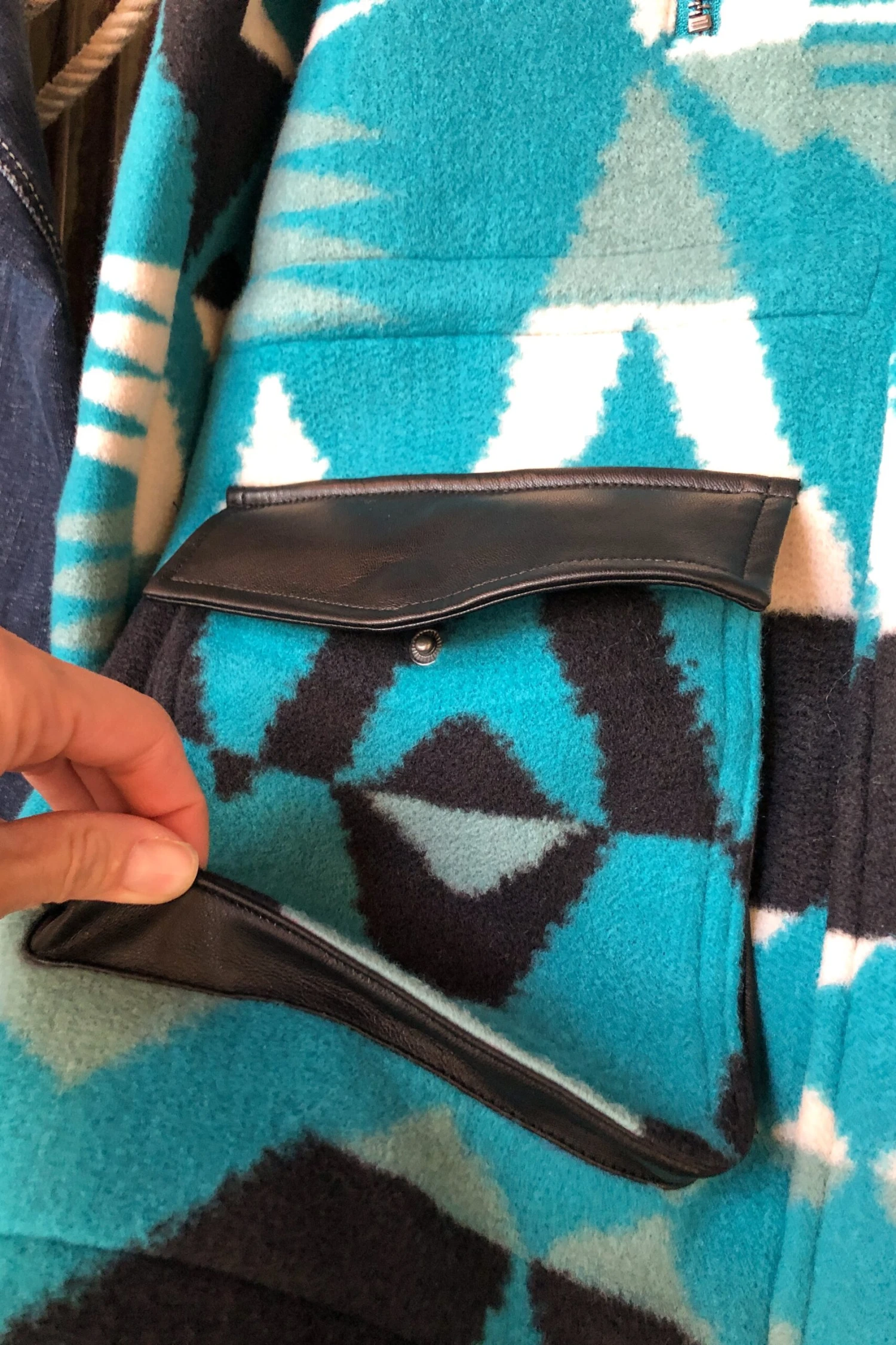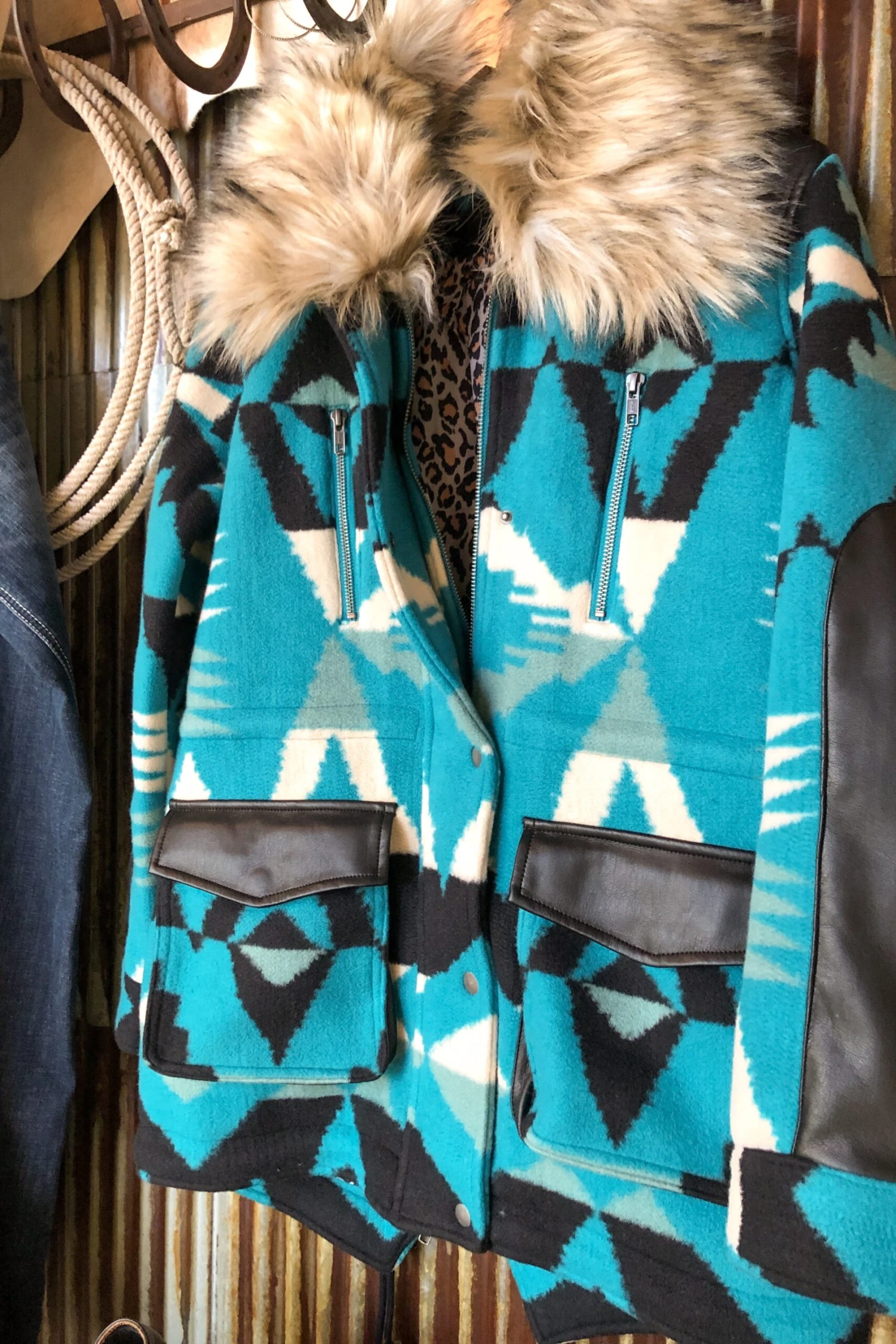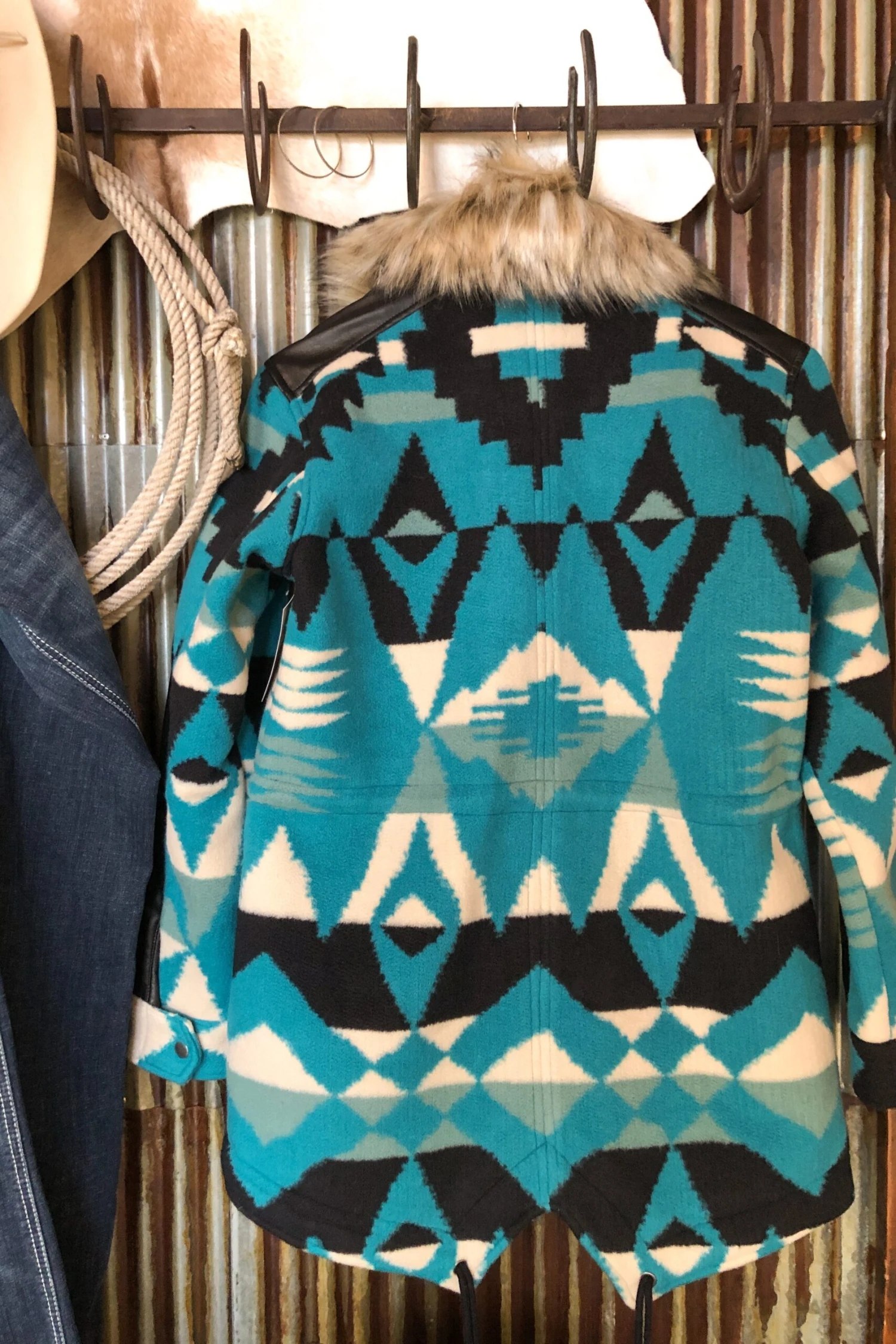 - Stunning southwest patterned fleece coat.