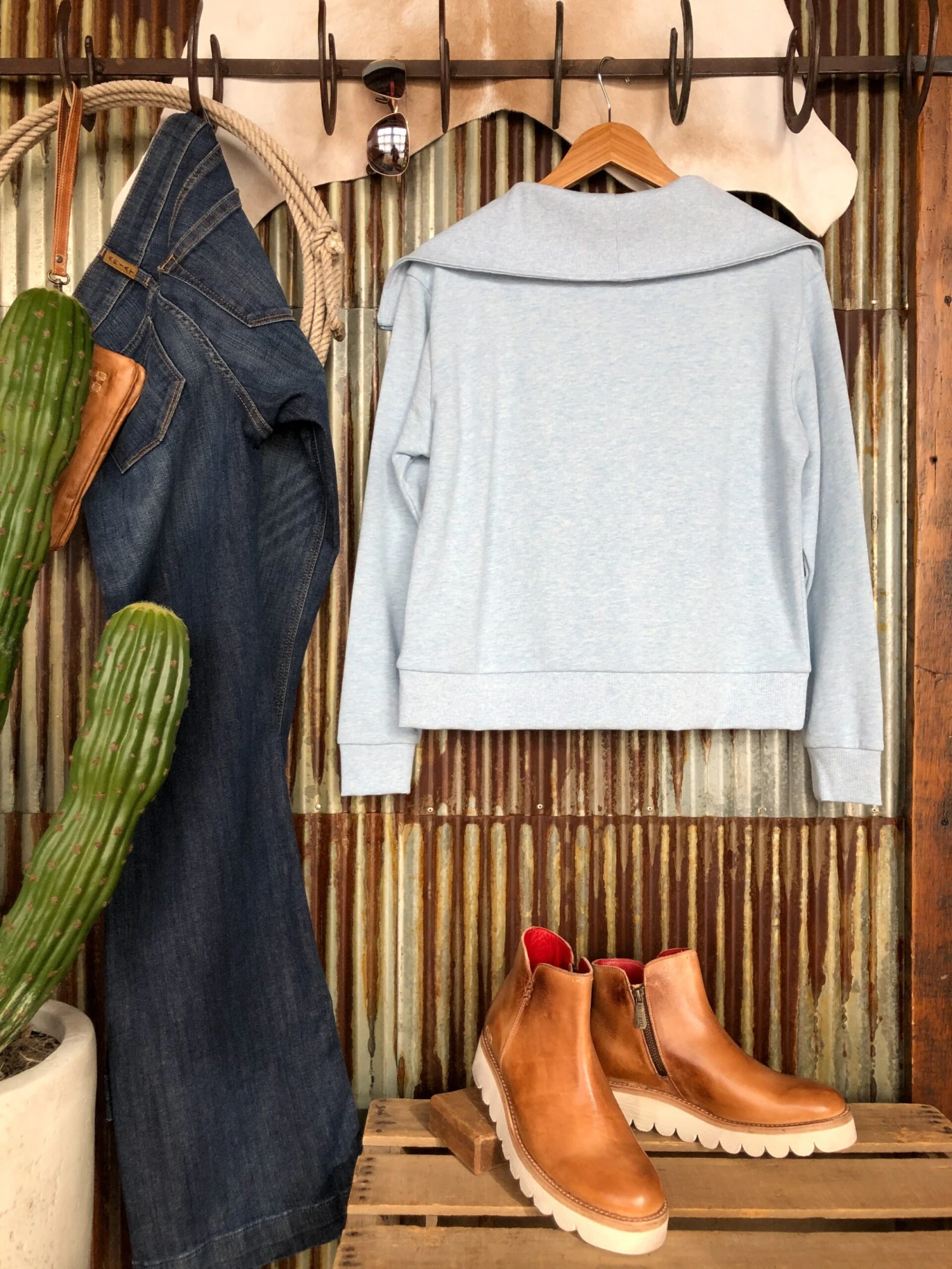 - Shown styled with The Blayke Perfect Rise Trouser Jean *Exclusive*, The Saratoga booties, The Roca crossbody wristlet, and Bex Nova Sunglasses {matte gold}.