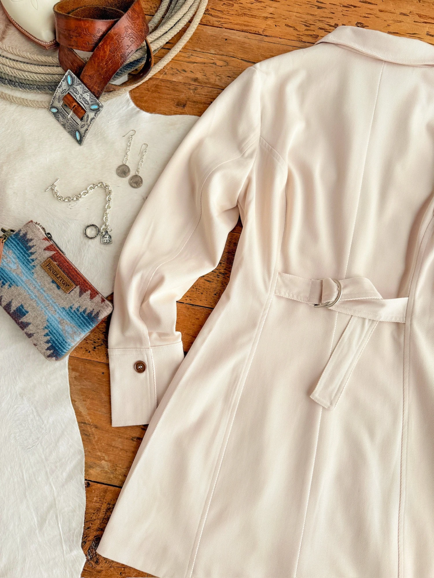 - Adjustable back cinch waist tie.