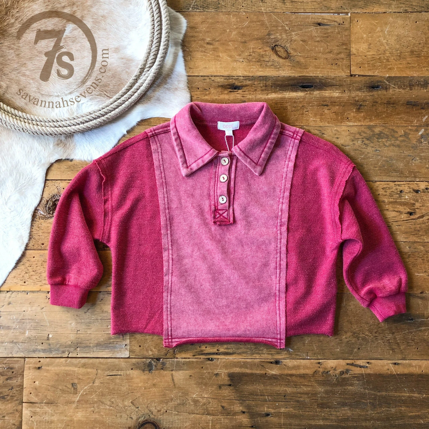 - Color washed magenta youth pullover.