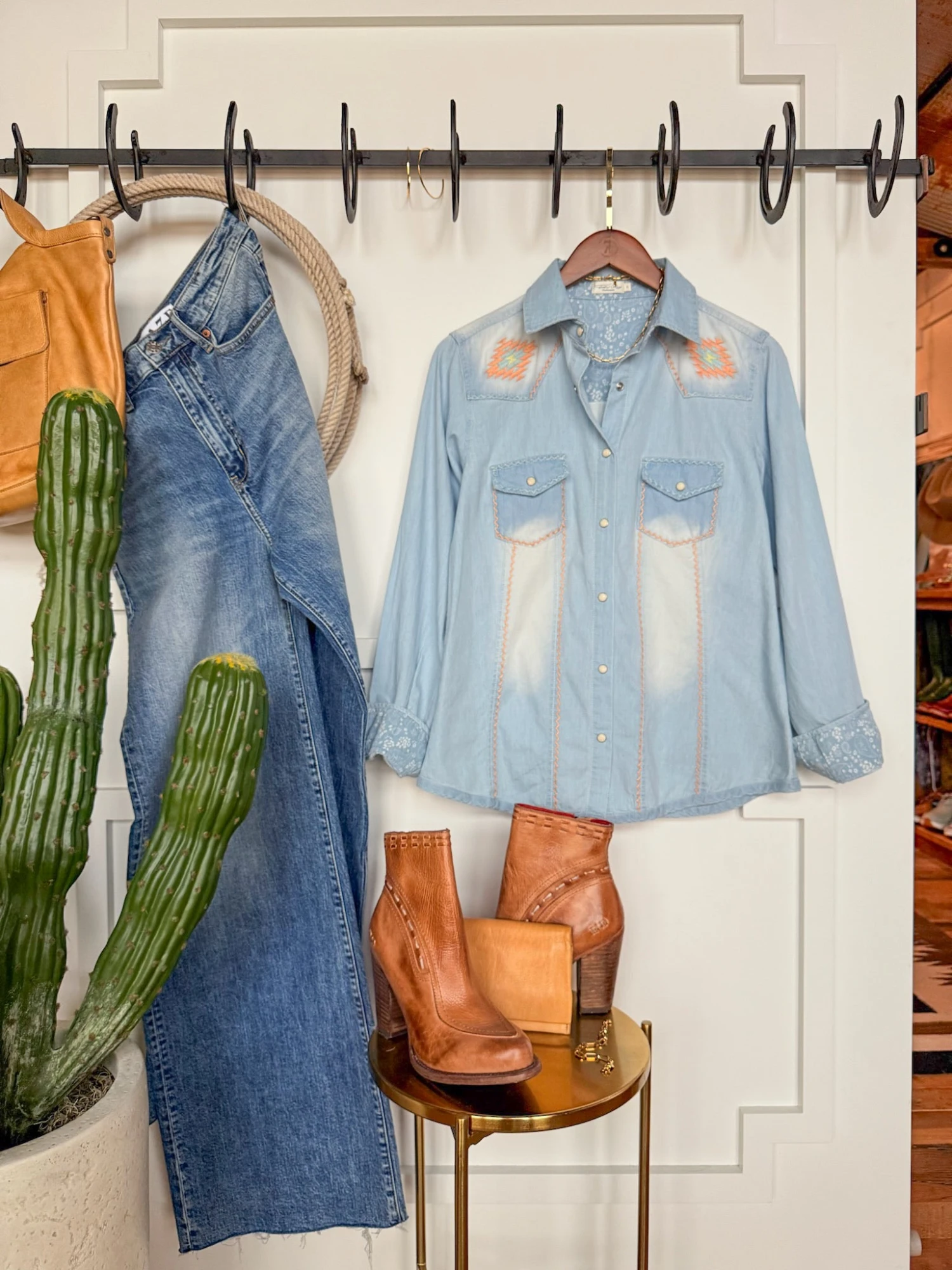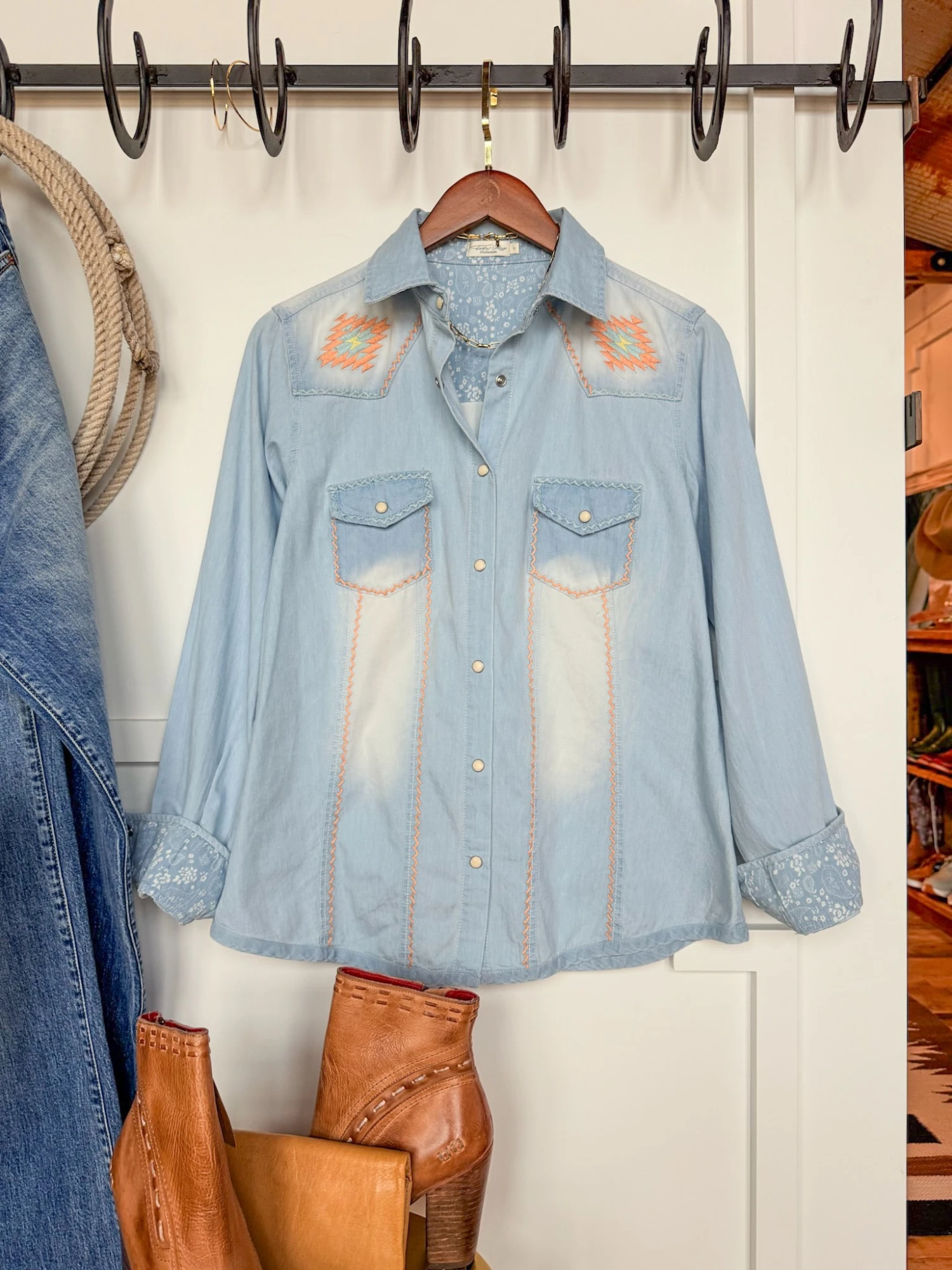 SKU: C2F2Y 7704196513855 Categories: Maternity Friendly, Women's Tags: Button Up, Long Sleeves, Tasha Polizzi, Washed blue