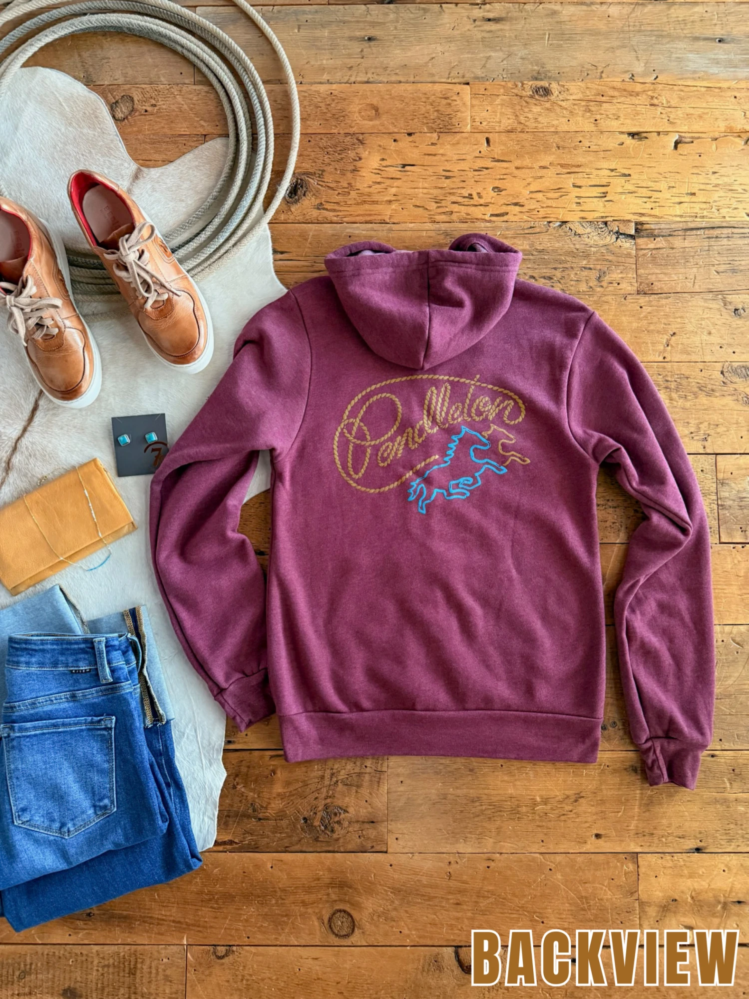 - Pendleton heather burgundy western graphic hooded full zip jacket.