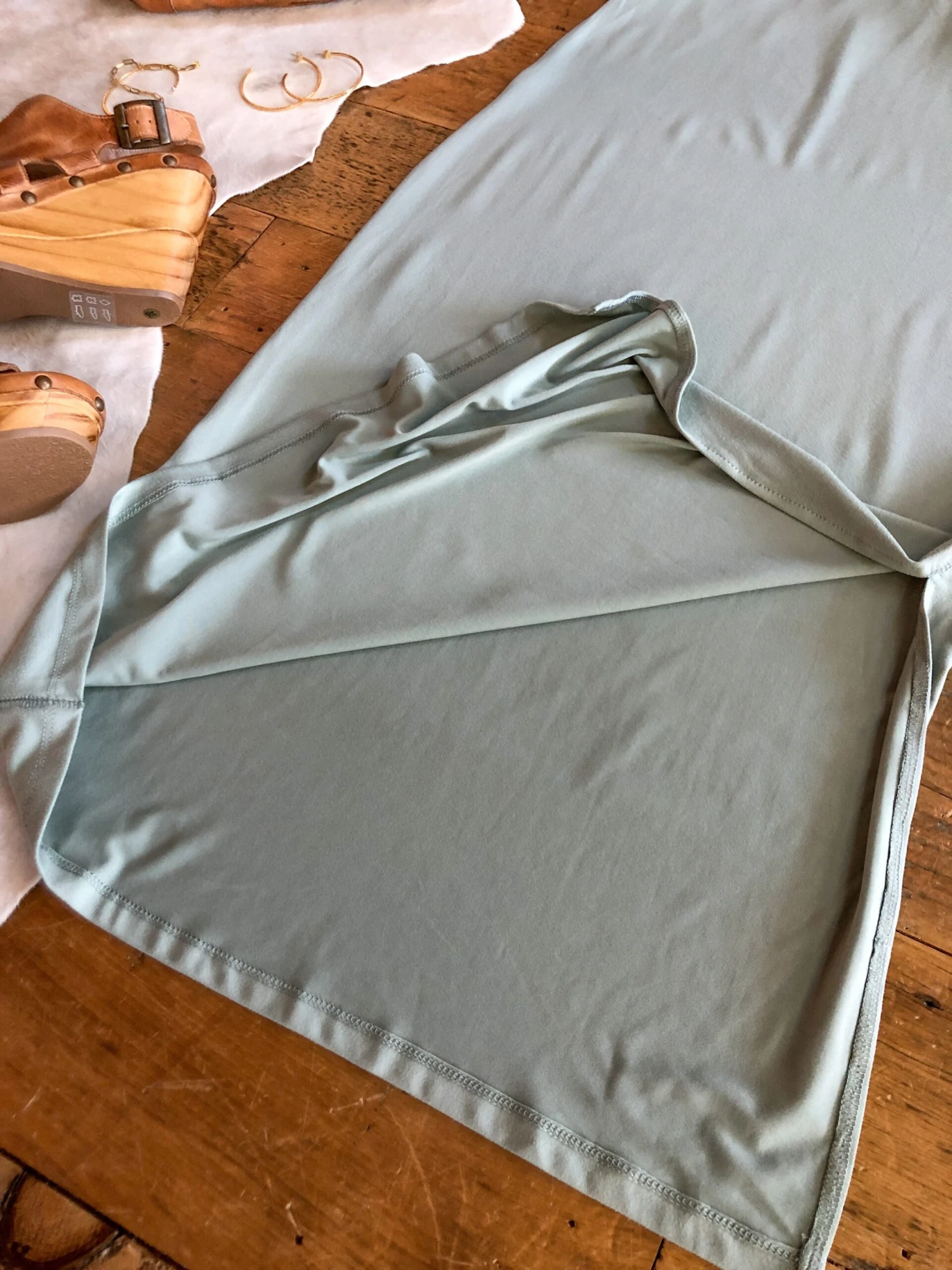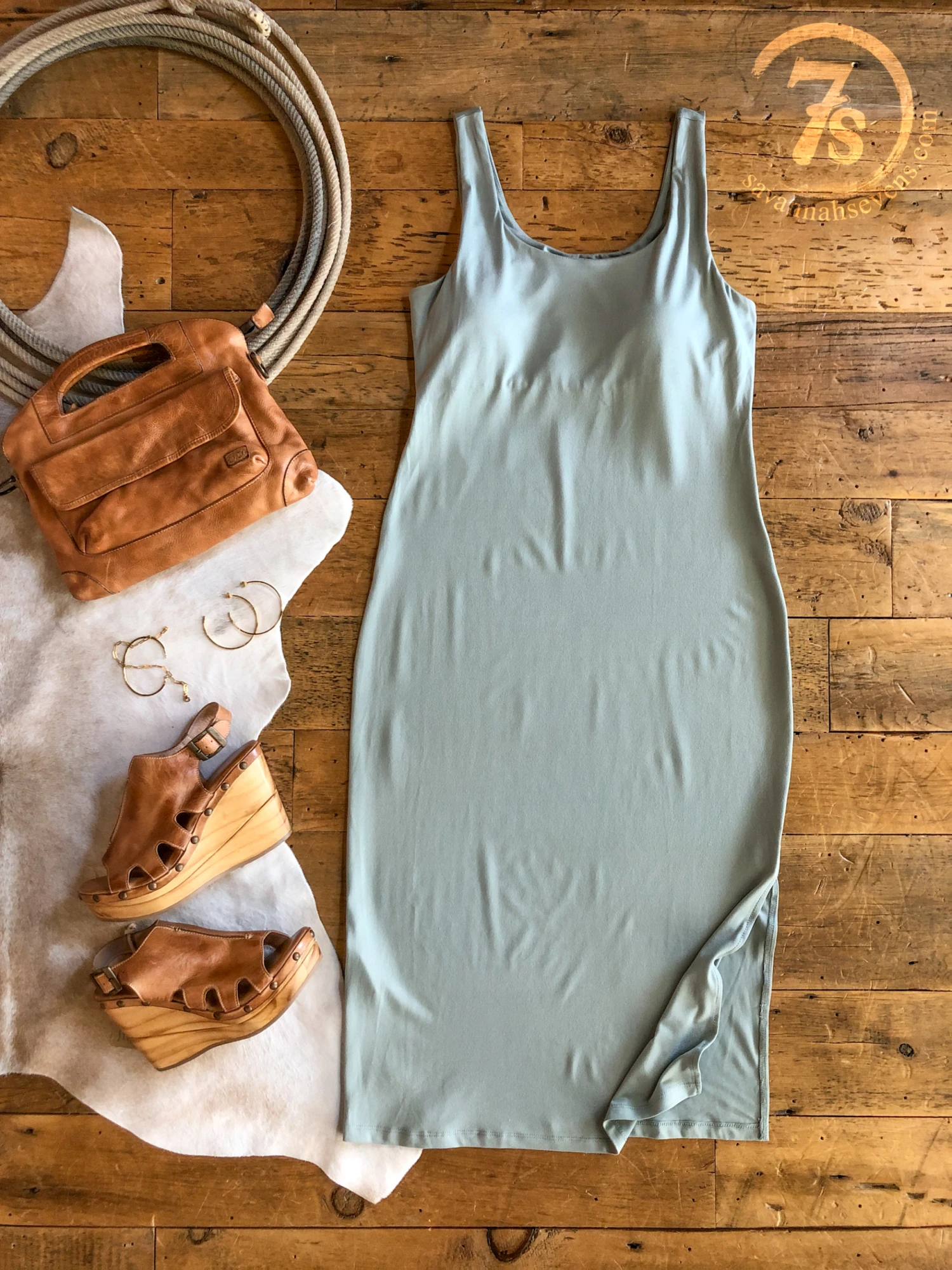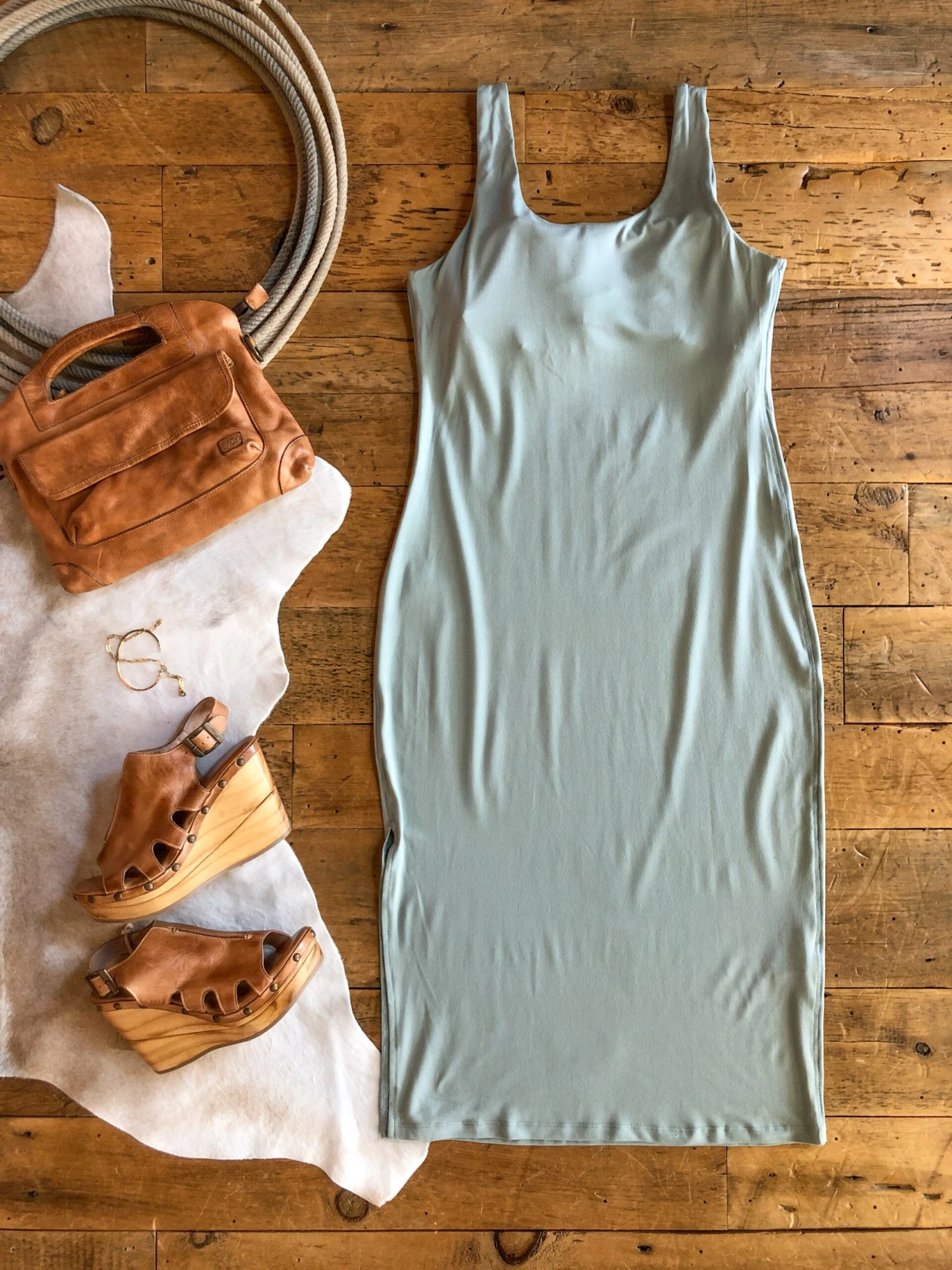 - Light sage sleeveless midi dress.