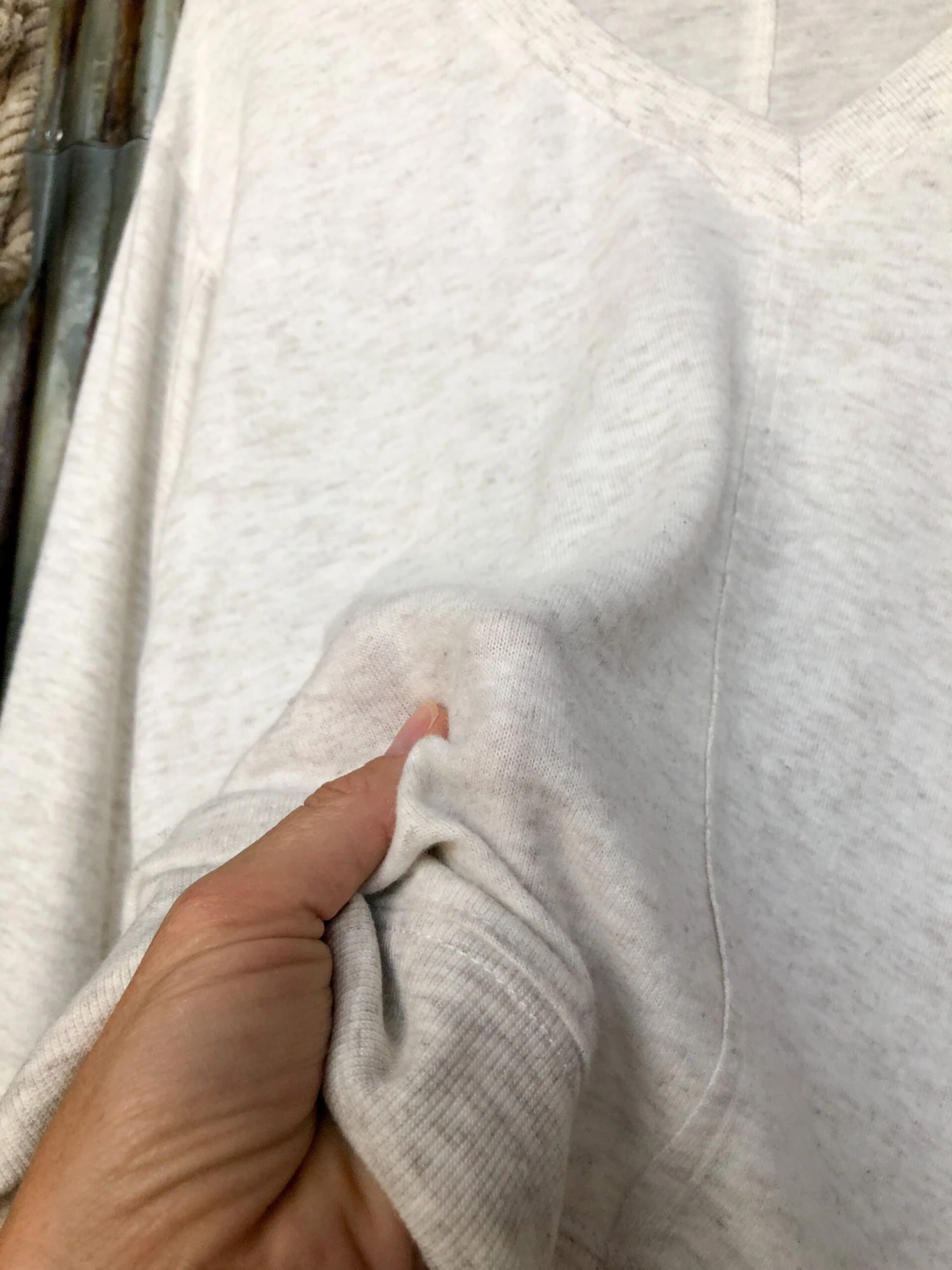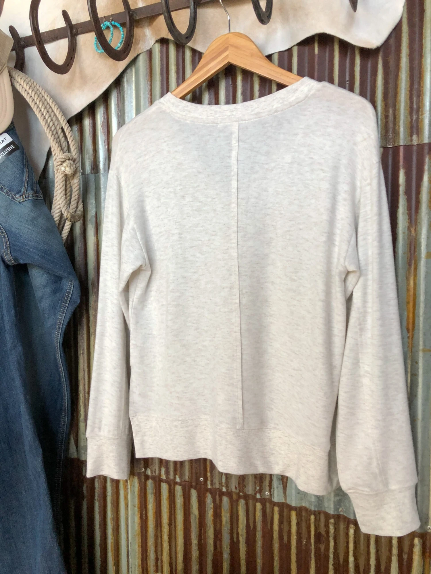 - Light oatmeal long sleeve top.