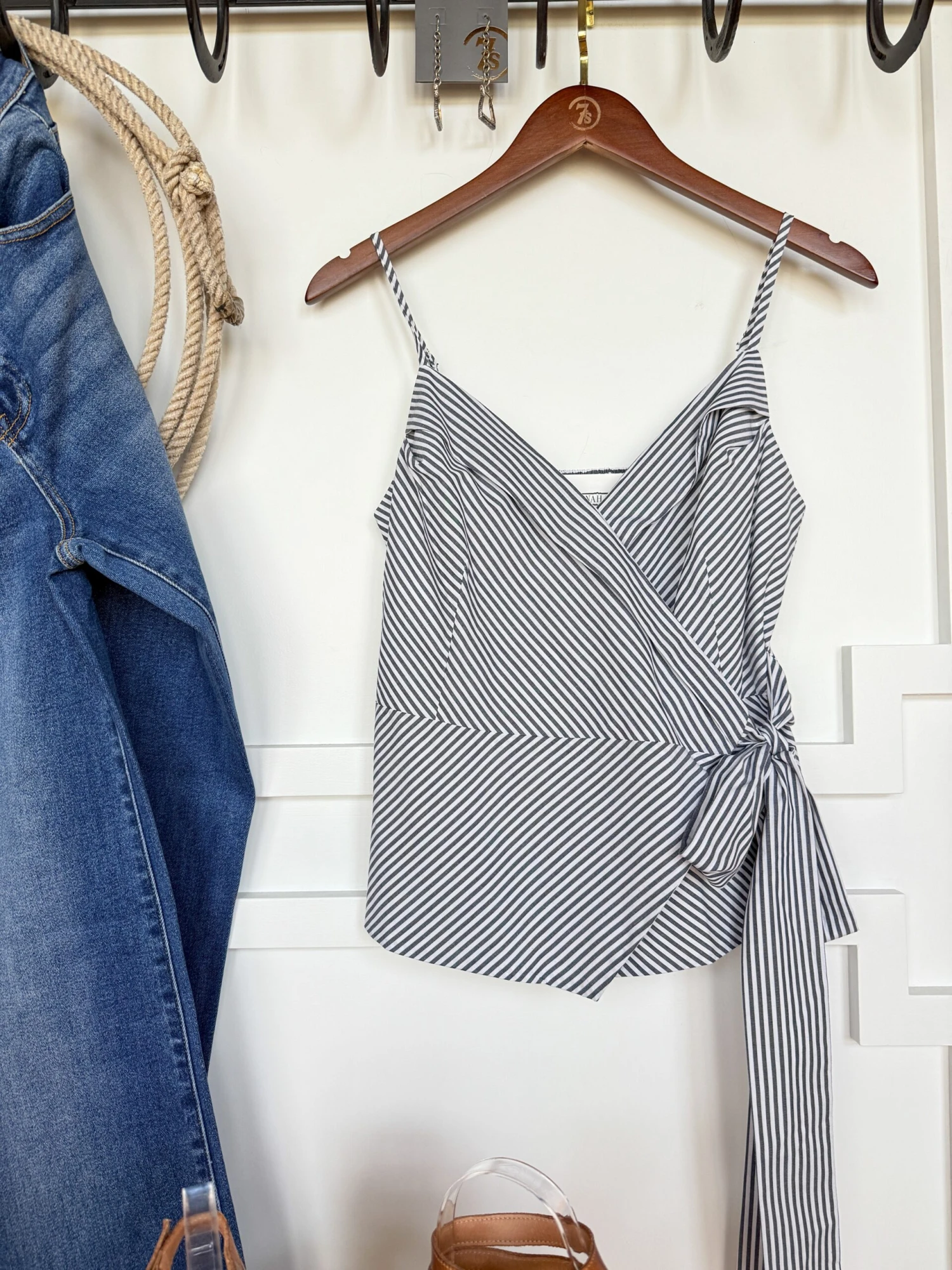 - Striped sleeveless top.