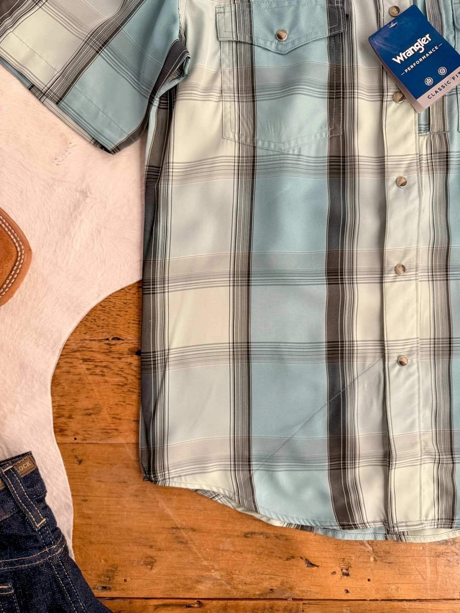 - Men’s performance short sleeve snap summary shirt.