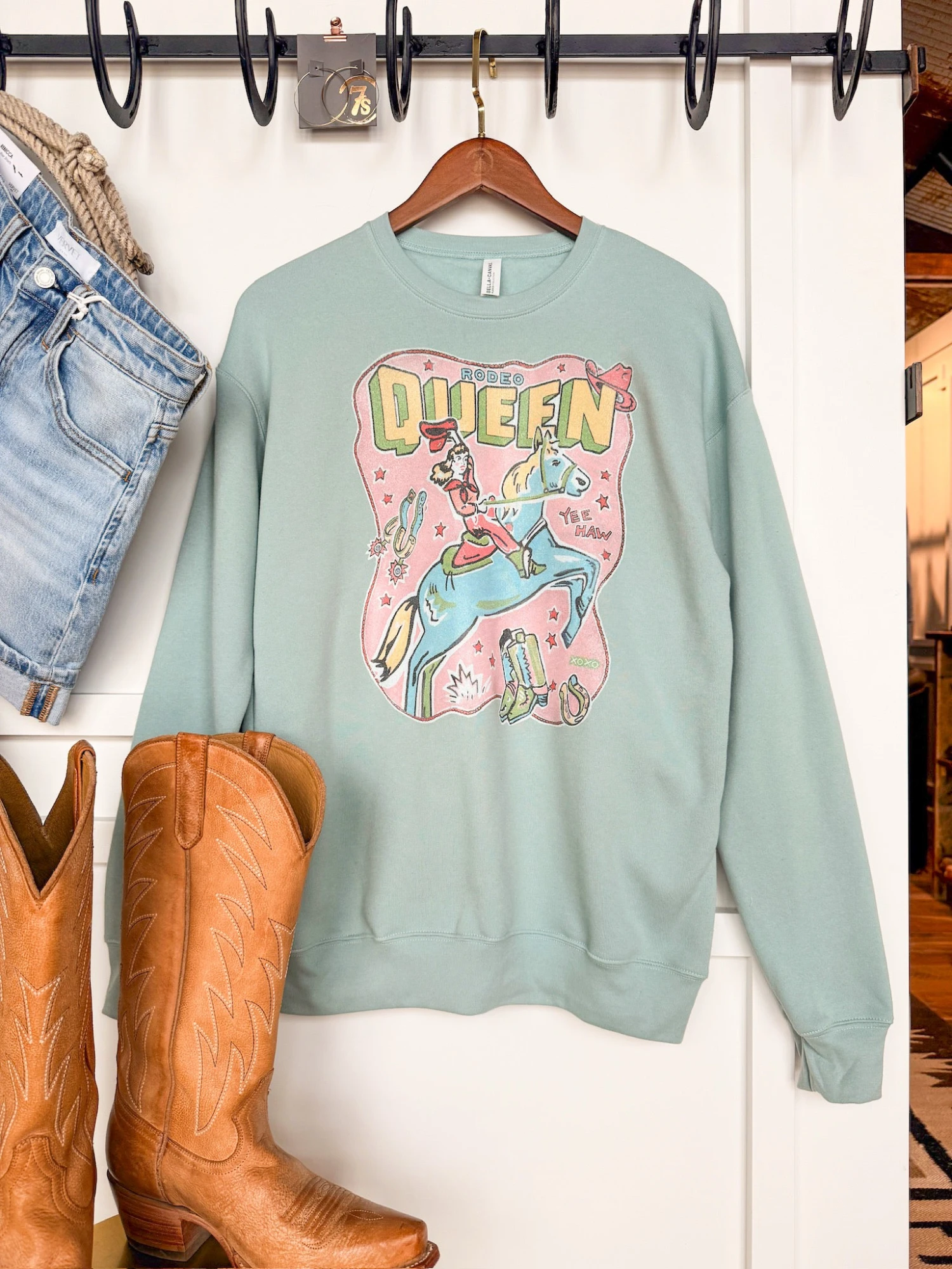 - “Rodeo Queen” hand drawn western graphic pullover.