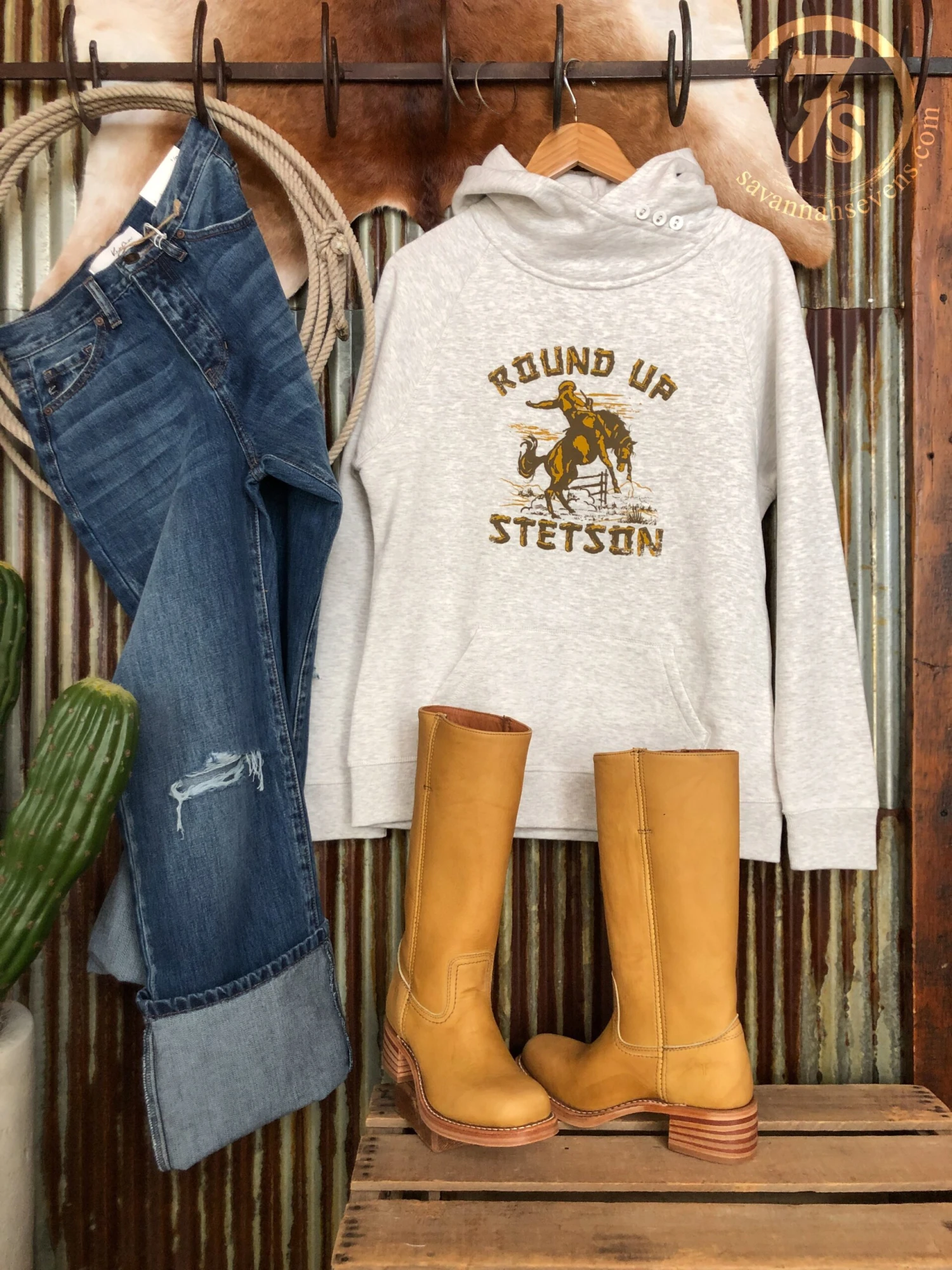 - “Round Up Stetson” graphic hoodie.