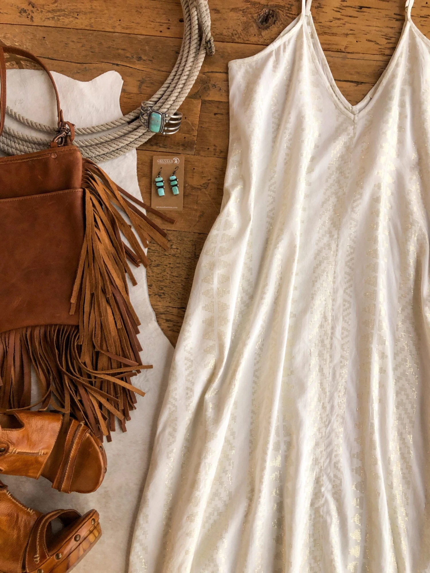 - Shown styled with The Tavares wedges, The Ruidoso bag, and Almira Cuff.