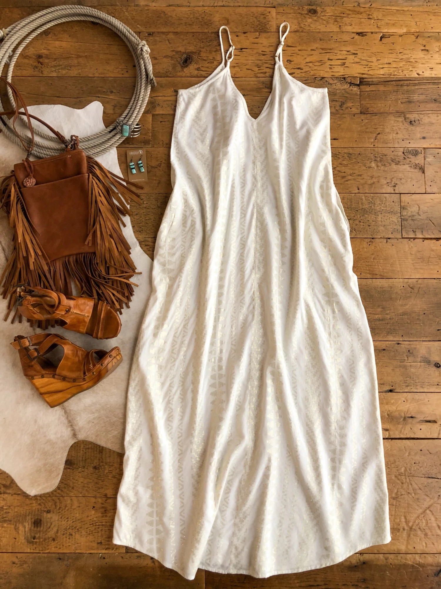 - Off-white southwest design sleeveless maxi dress.
