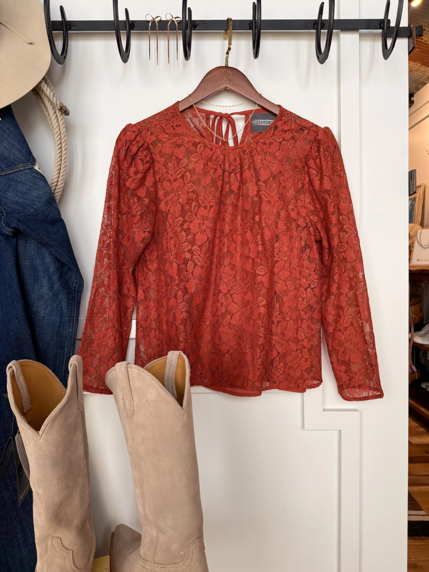 - Sangria long sleeve lace top.