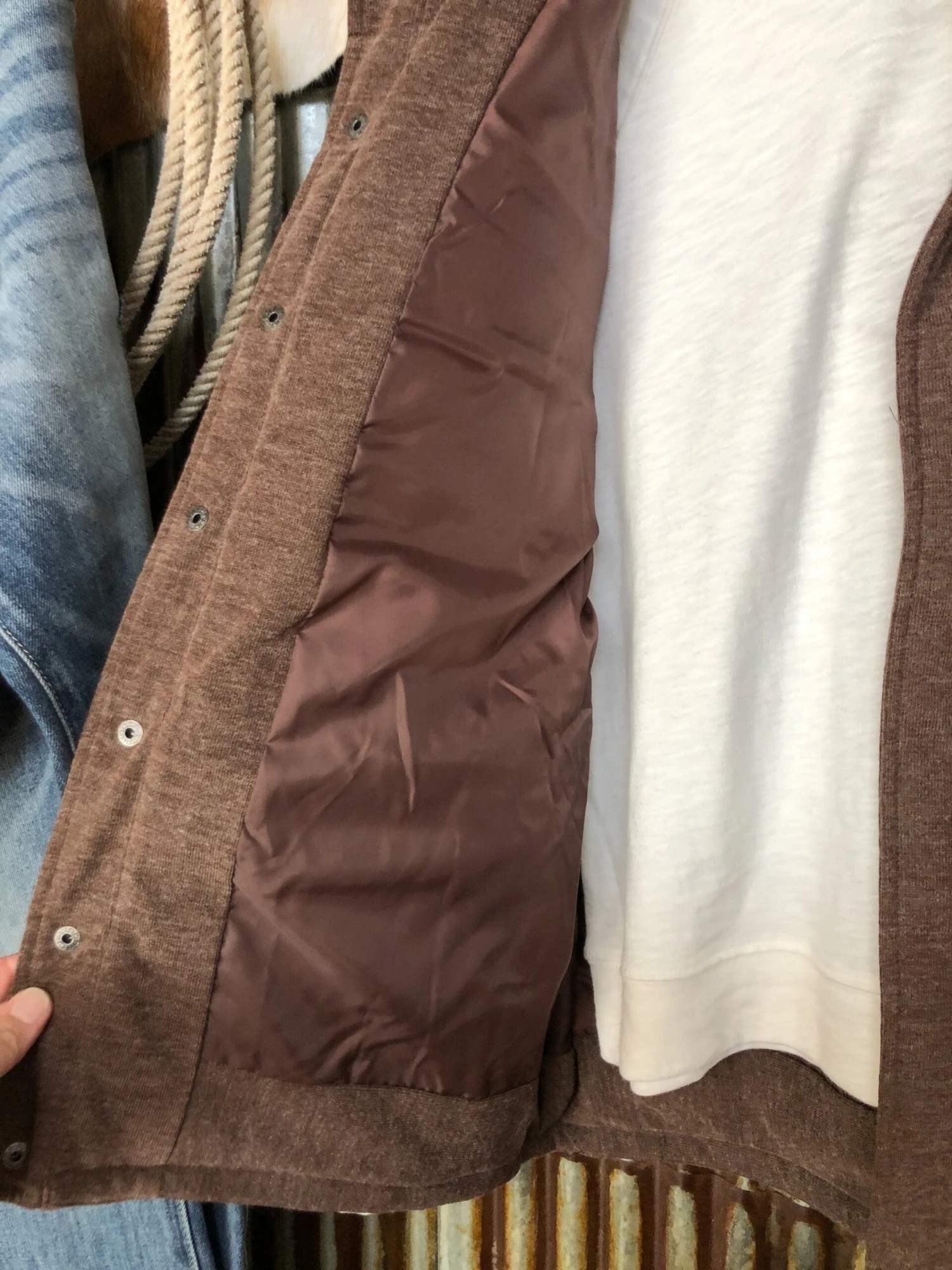 - Heather cocoa insulated summary up vest.