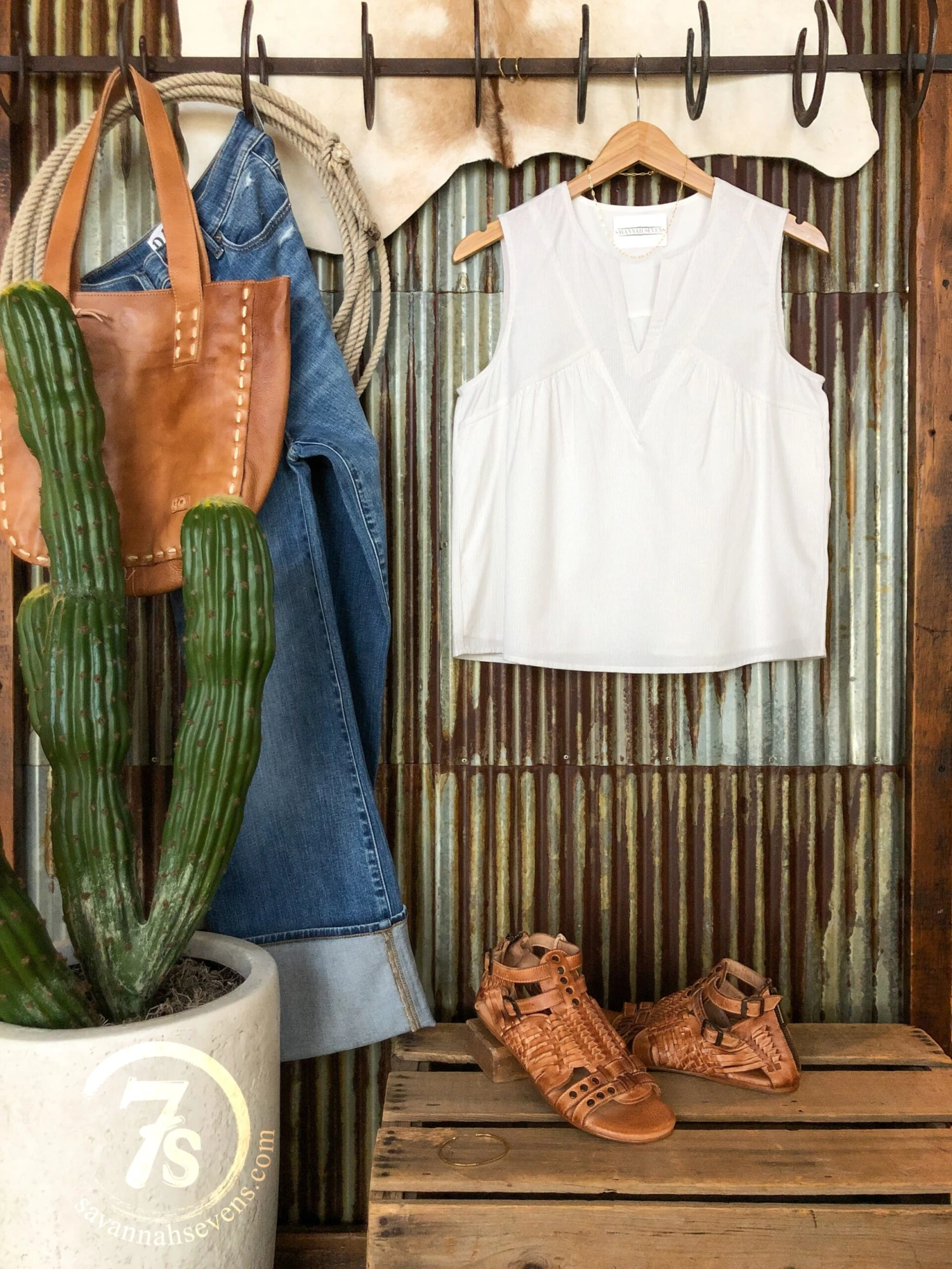 - Shown styled with The Cayce High Rise 90’s Wide Leg Jean, The Dacono sandals, The Callihan bag, Aguila Necklace, Posen Earrings, and Rutland Cuff.