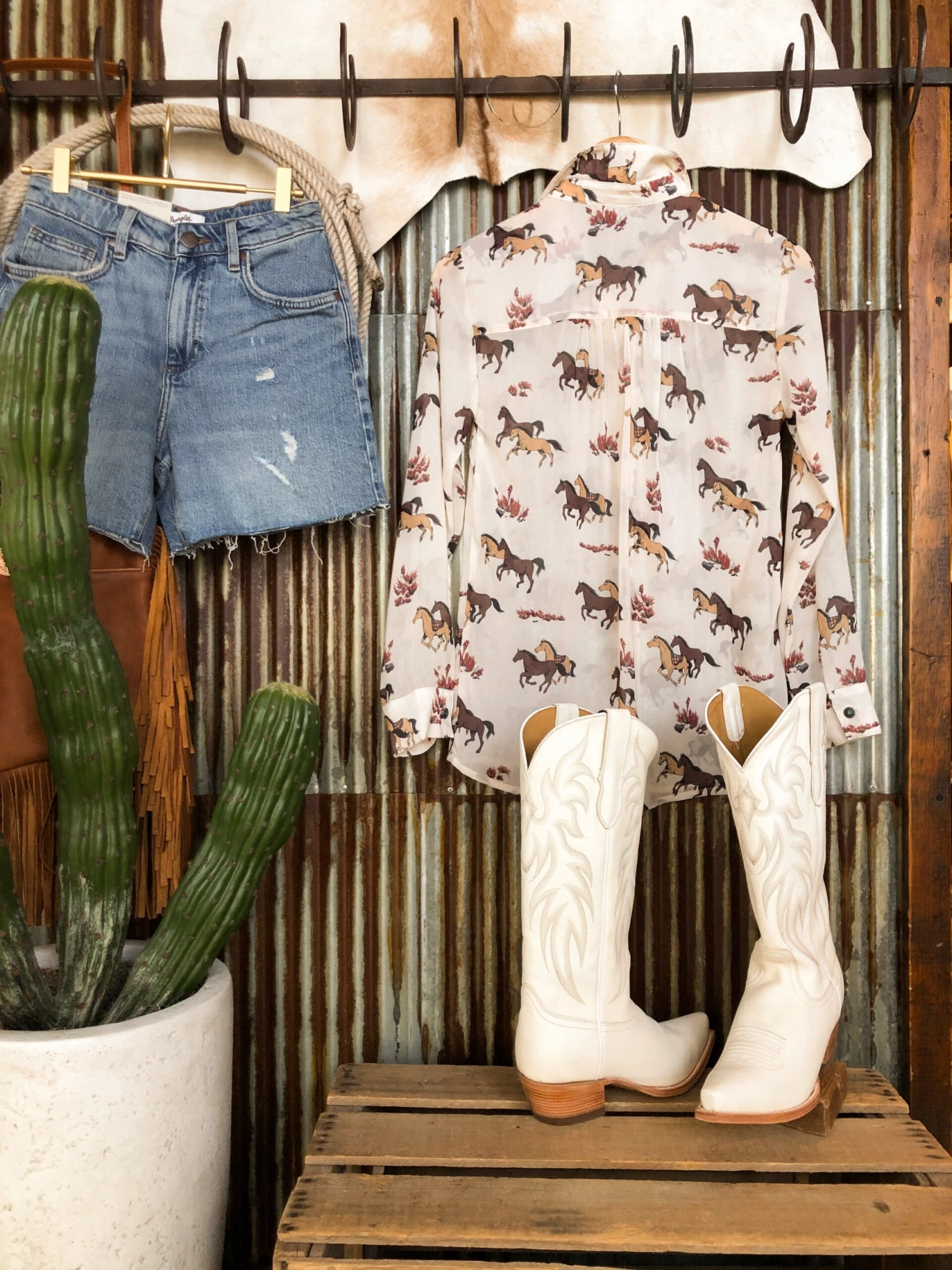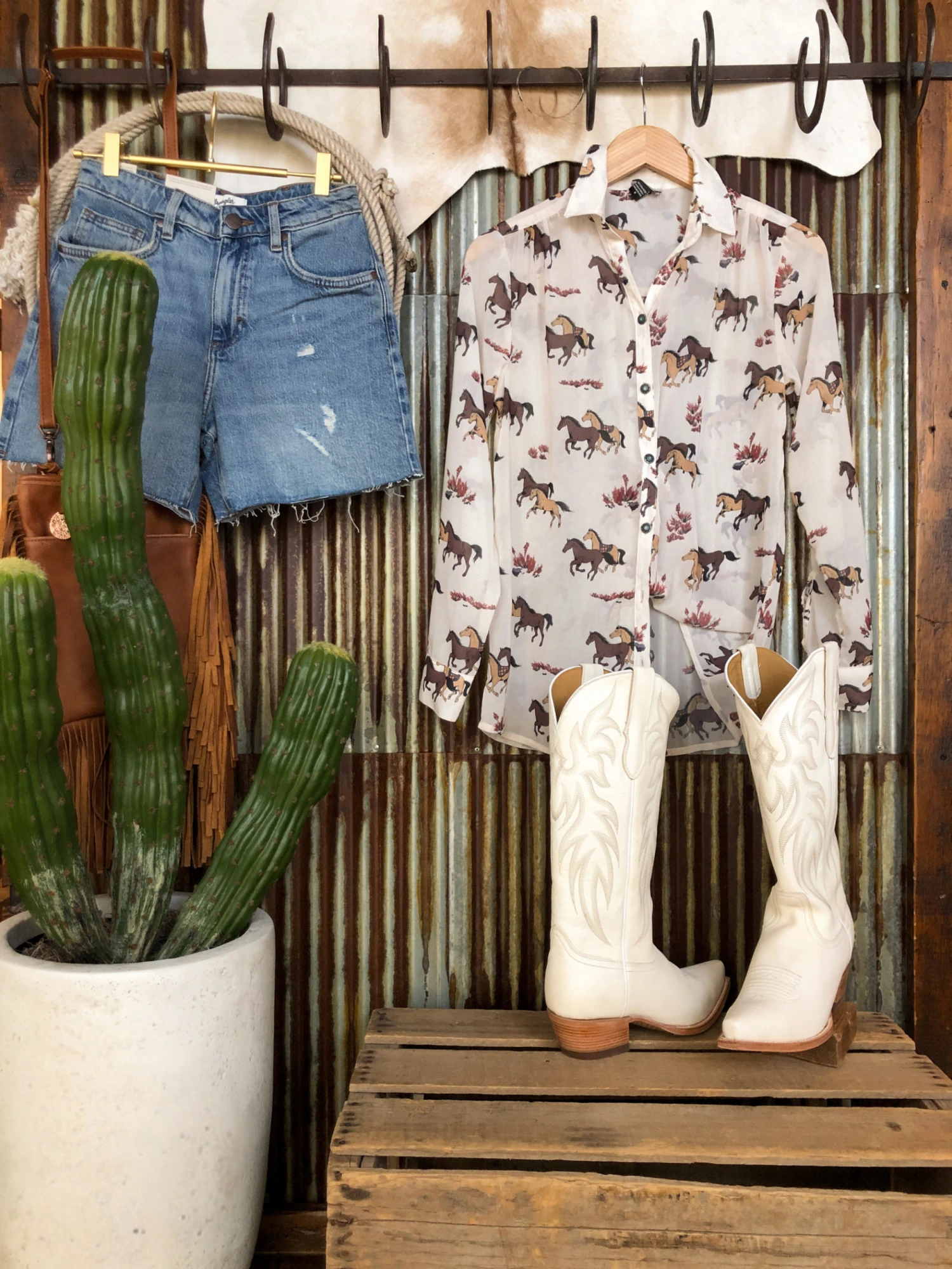 - Shown styled with The Shyanne Shorts, The Terlingua boots, The Ruidoso handbag, and Senoia Earrings.