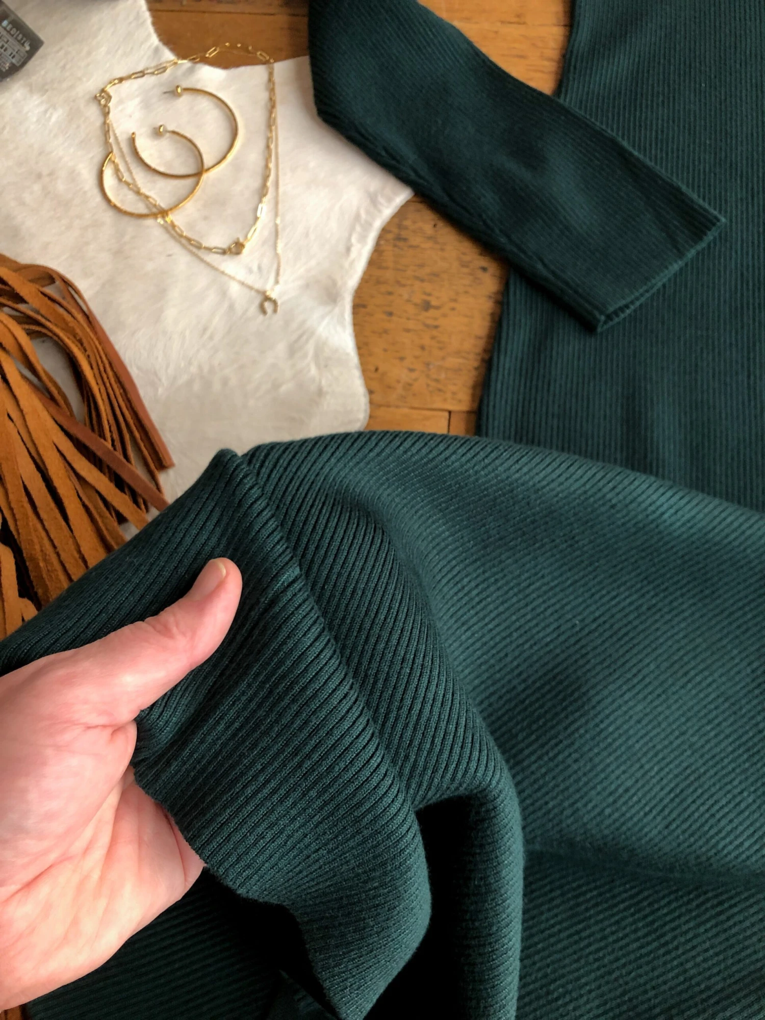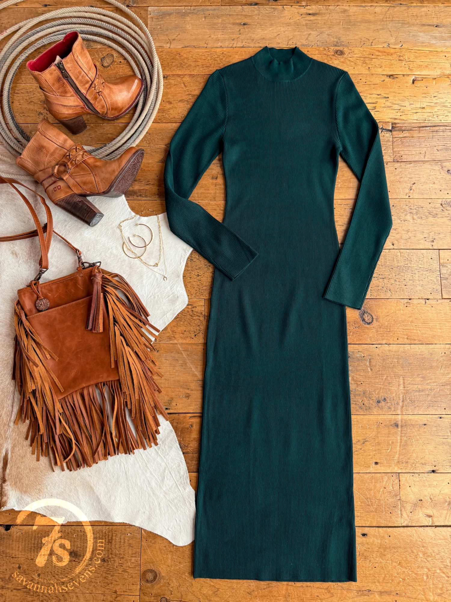 - Emerald long sleeve maxi dress.