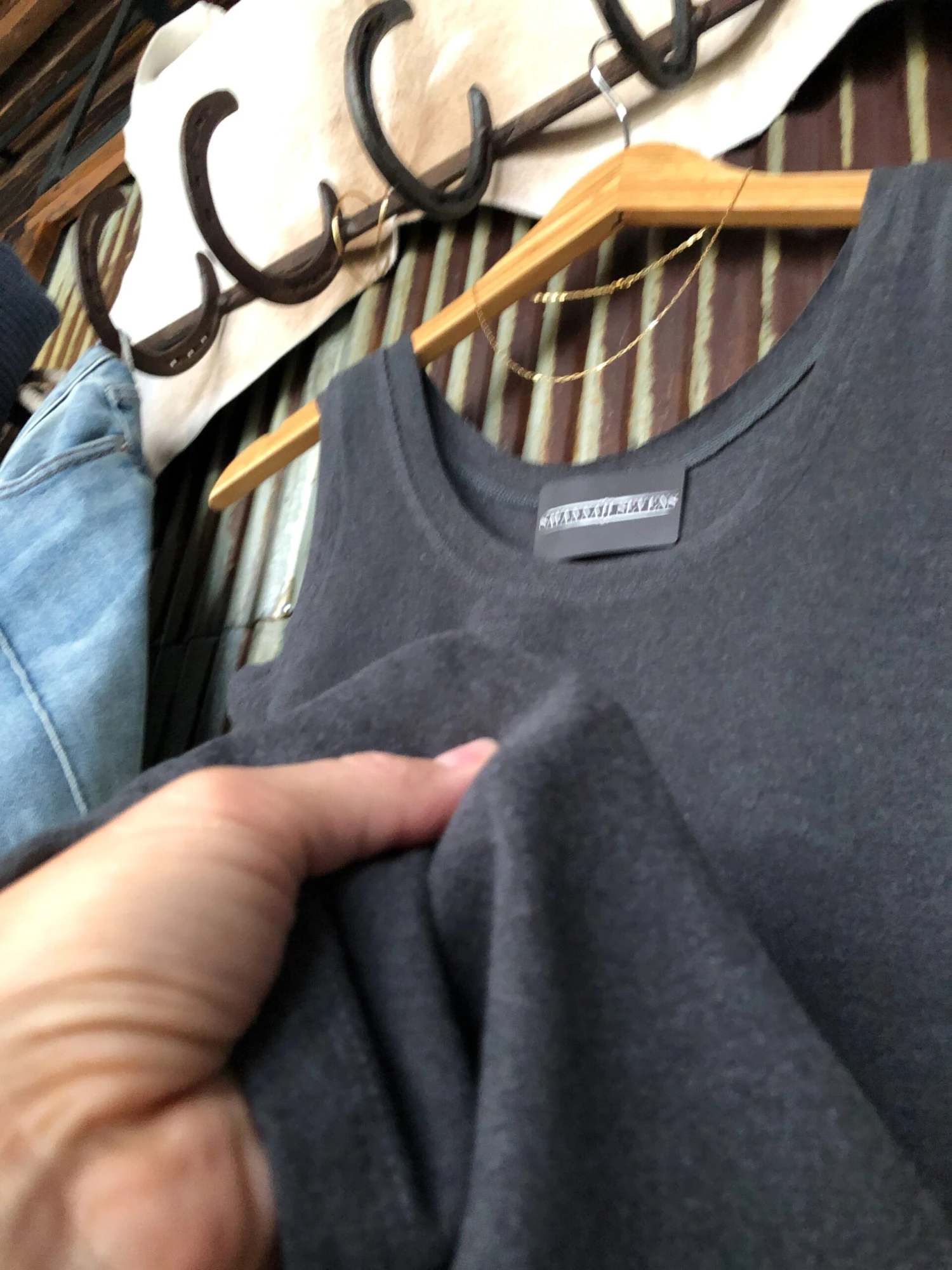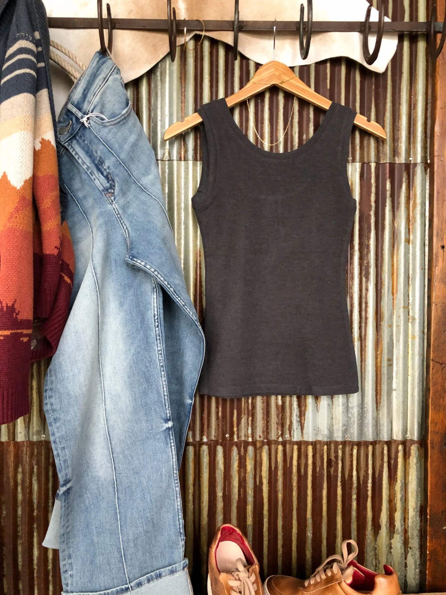 - Charcoal sleeveless top.