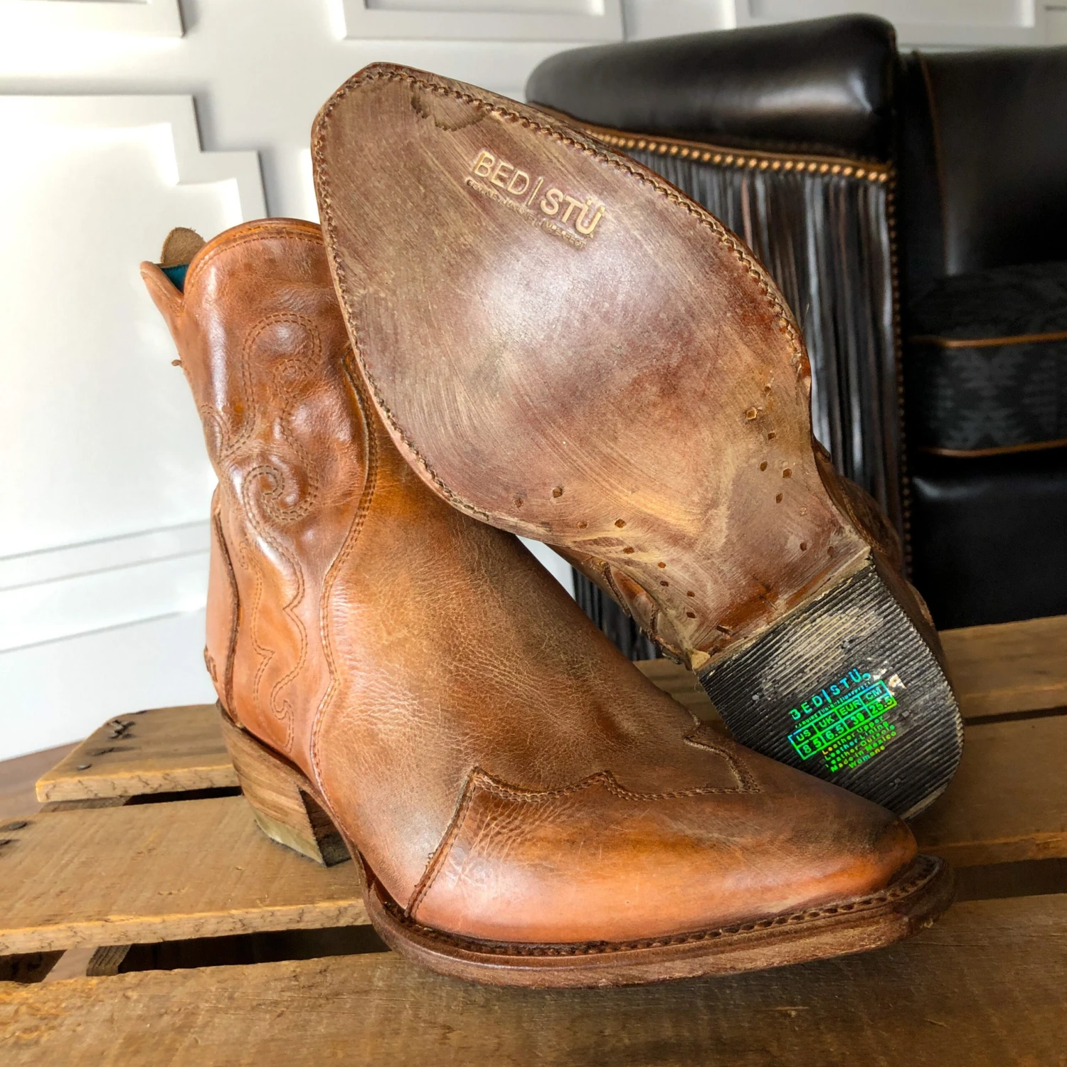 - Western welt construction with lemonwood pegs and durable leather sole; can be resoled.