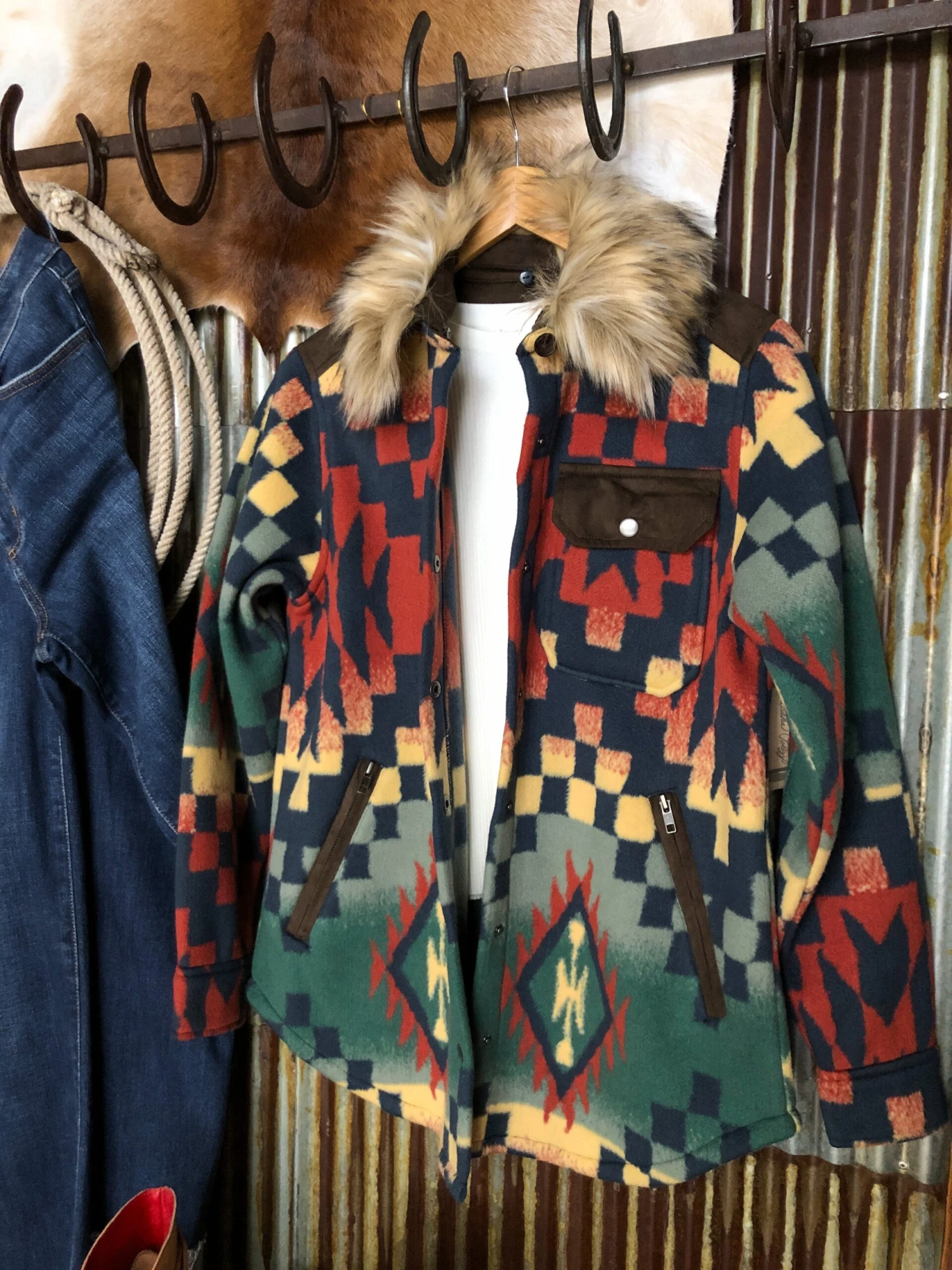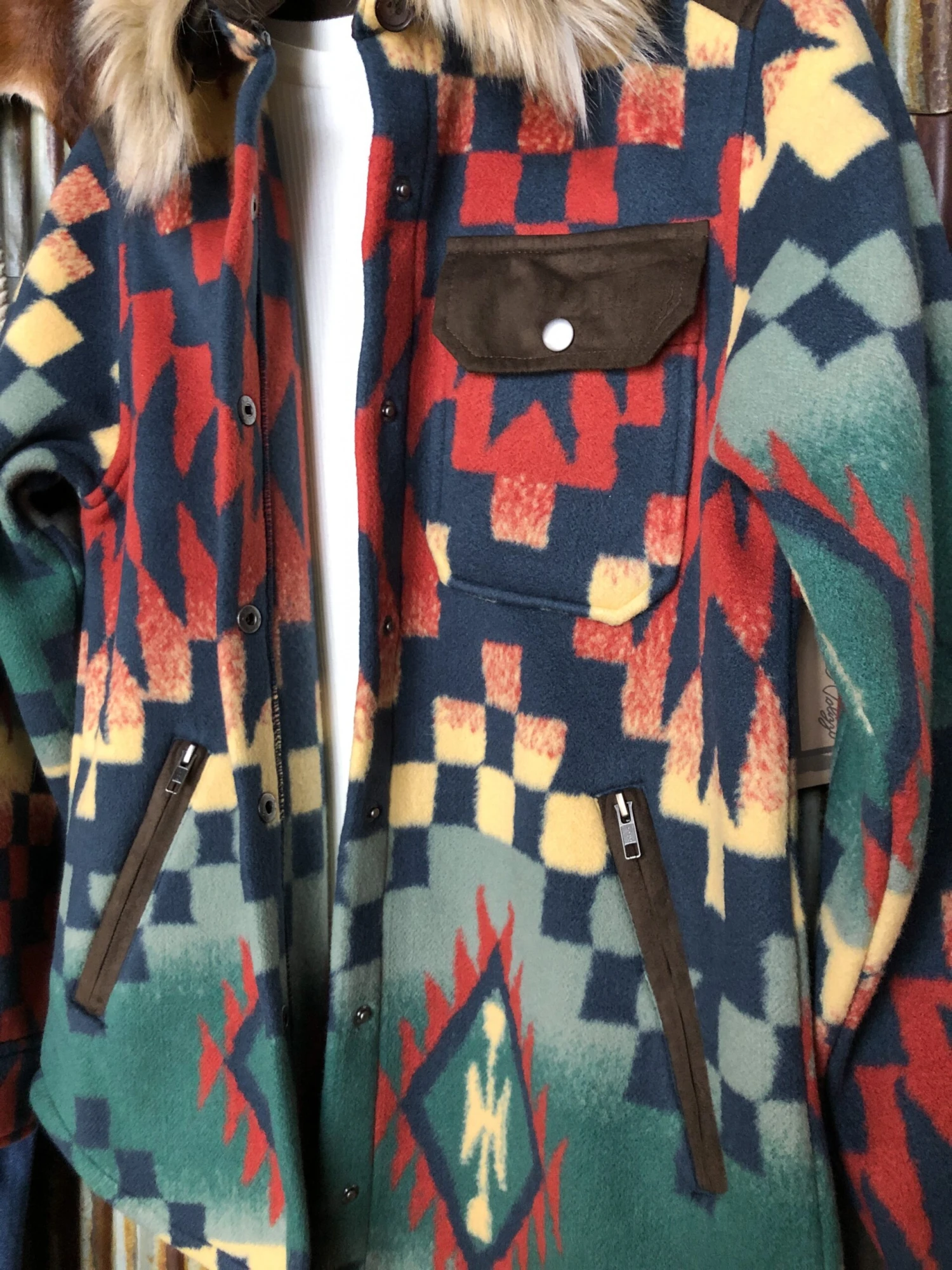 - Dark chocolate suede back yoke, back center seam, accent snap summary chest pocket flap, and side zipper pocket trim.