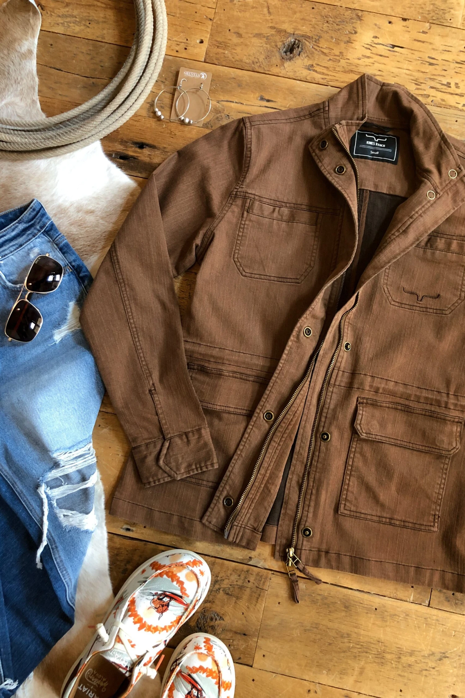 - Chocolate utility jacket.