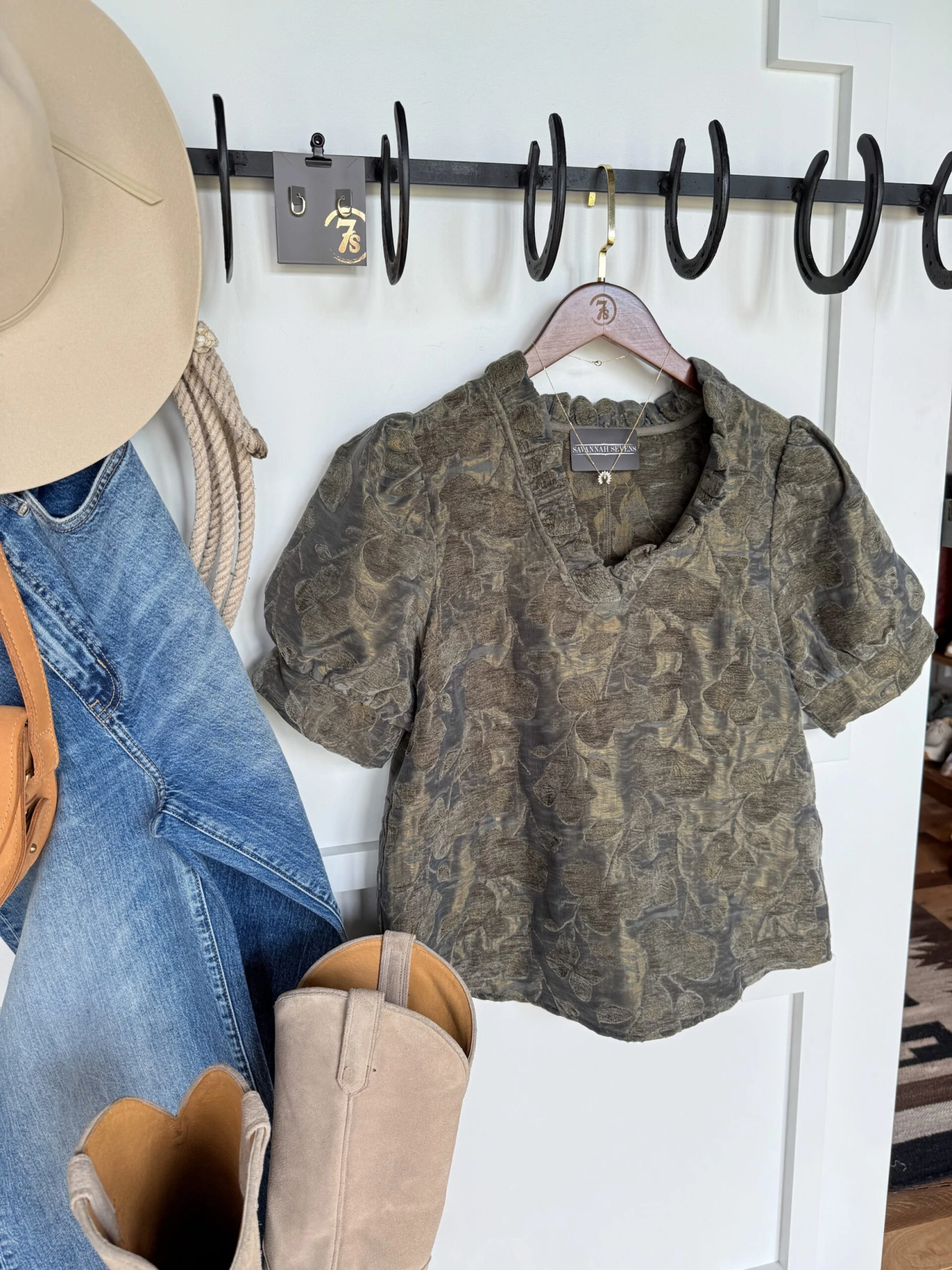 - Puff sleeve textured top.