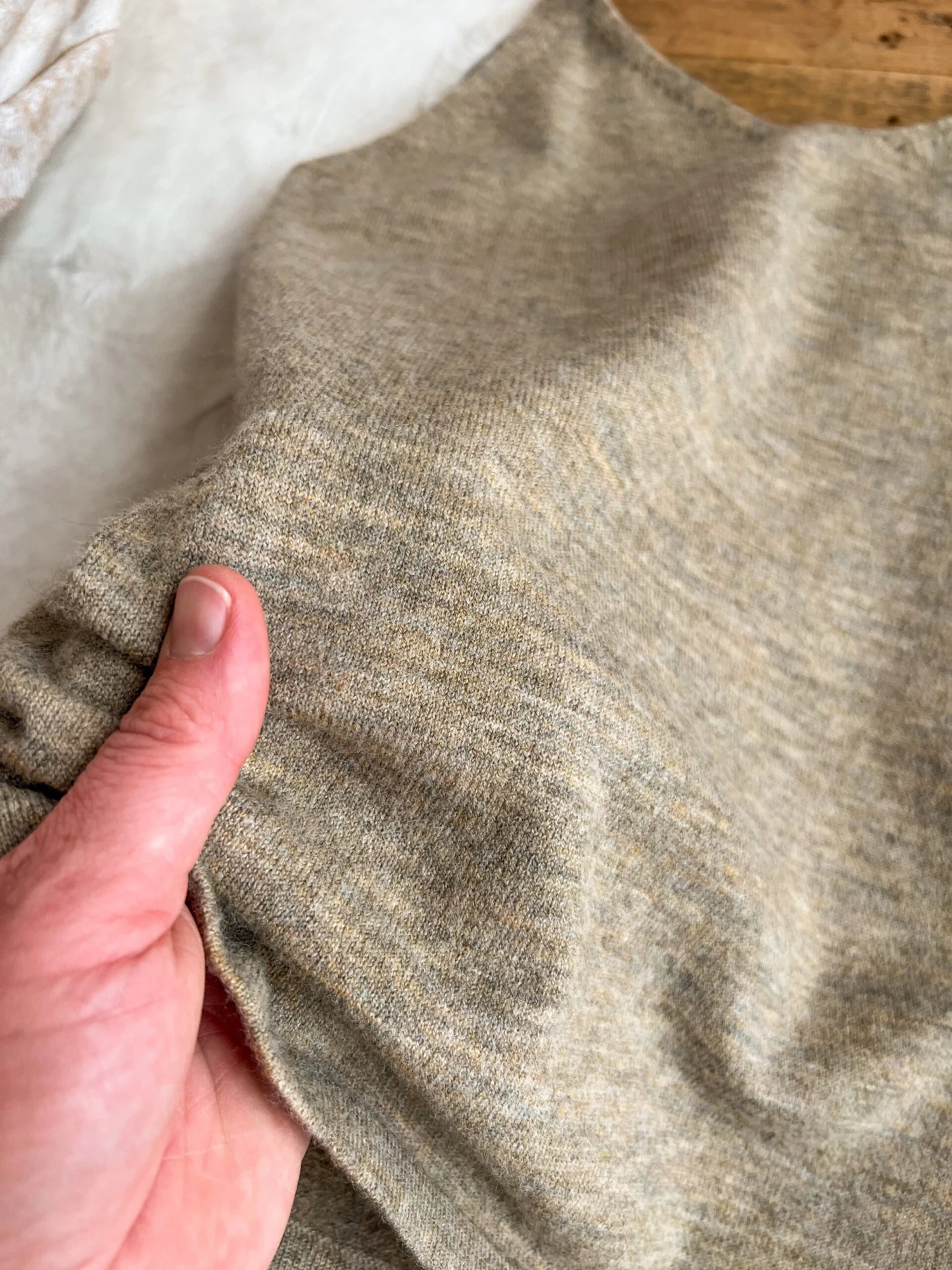 - Soft stretchy wool blend fabric; does not feel itchy.