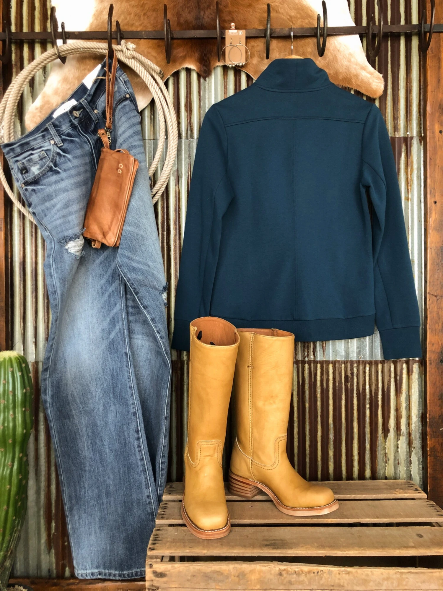 - Shown styled with The Trace High Rise 90’s Wide Leg Jean, The Lawton boots, Roca Crossbody, and Morado Earrings.