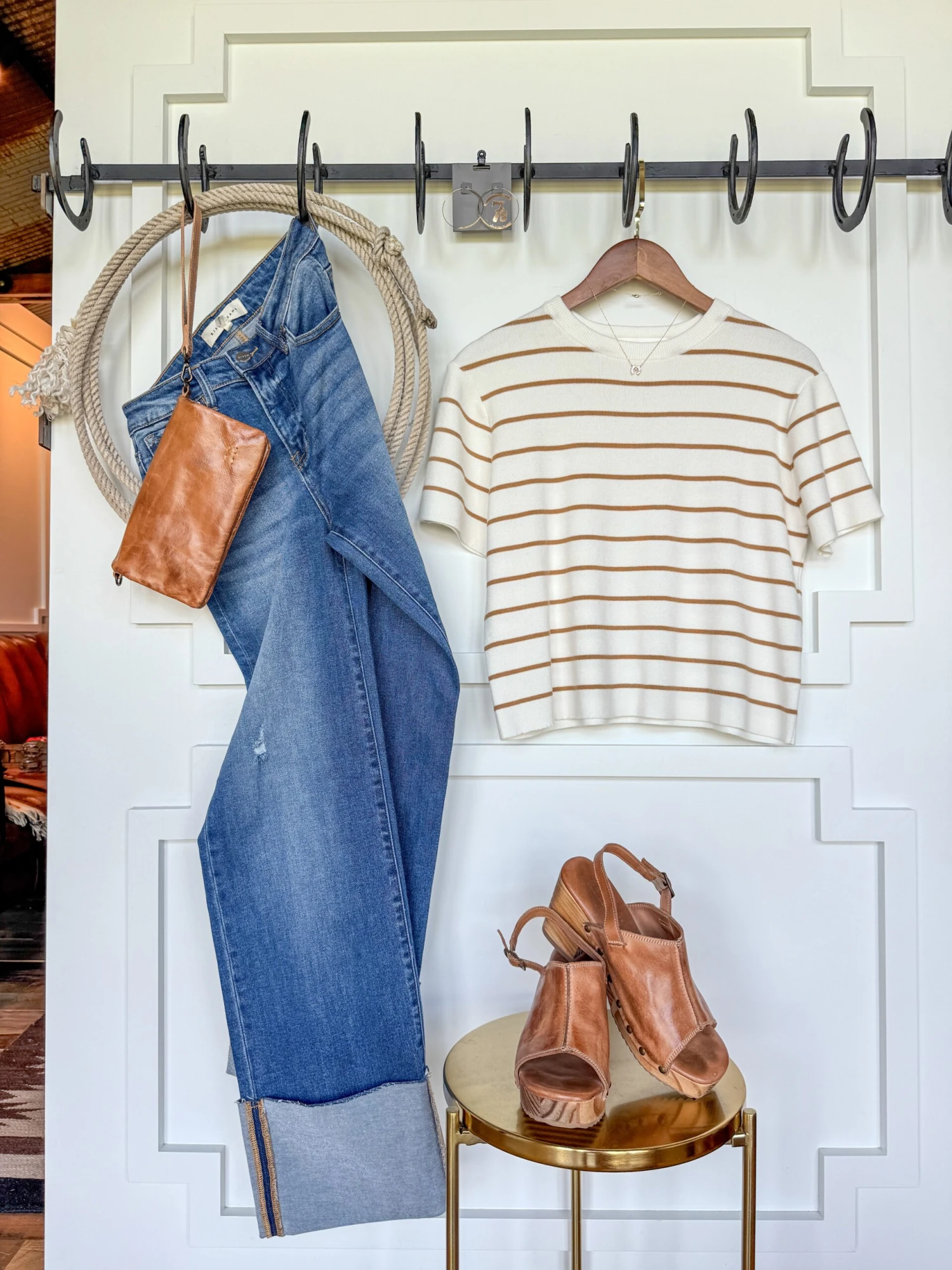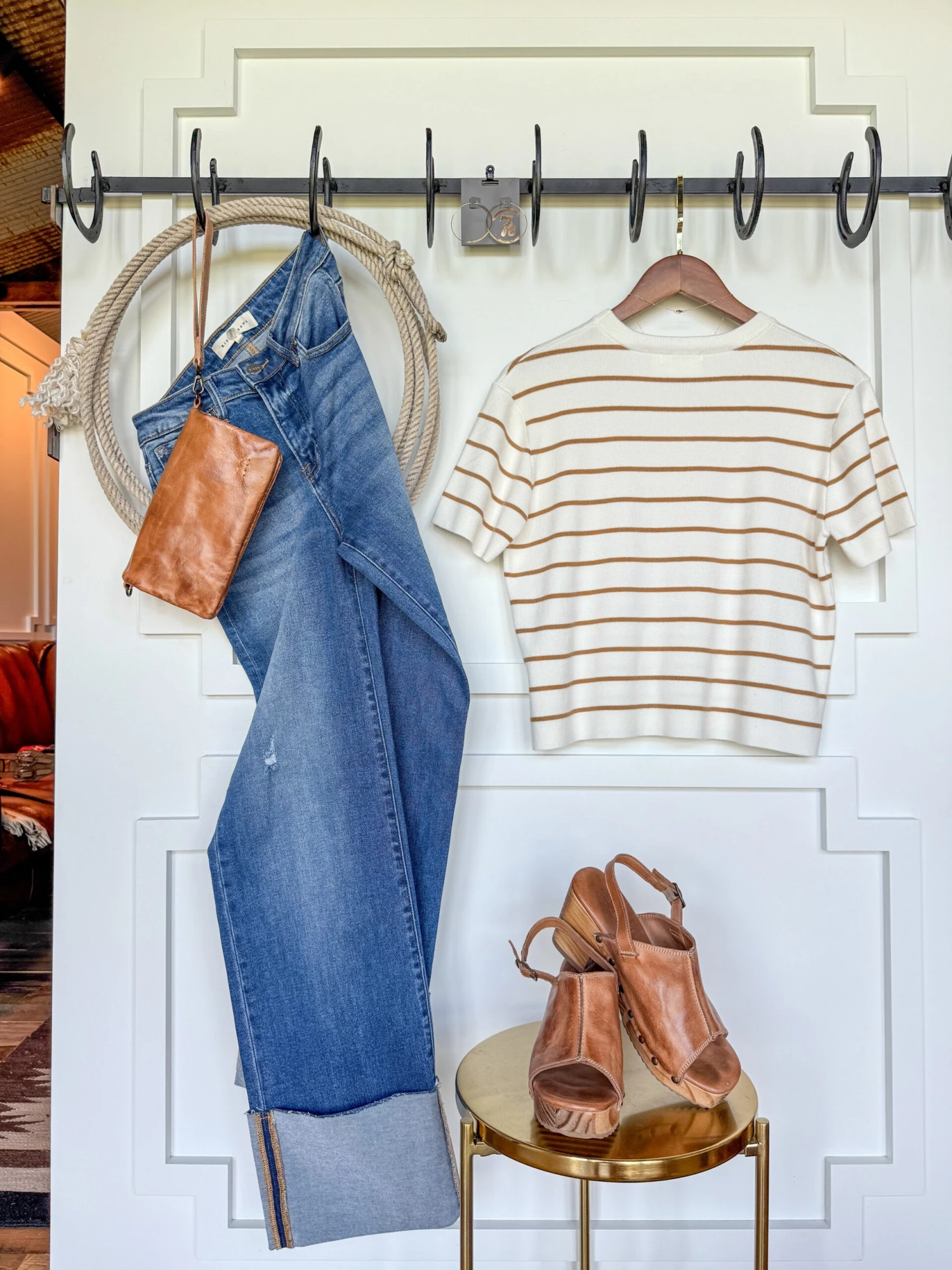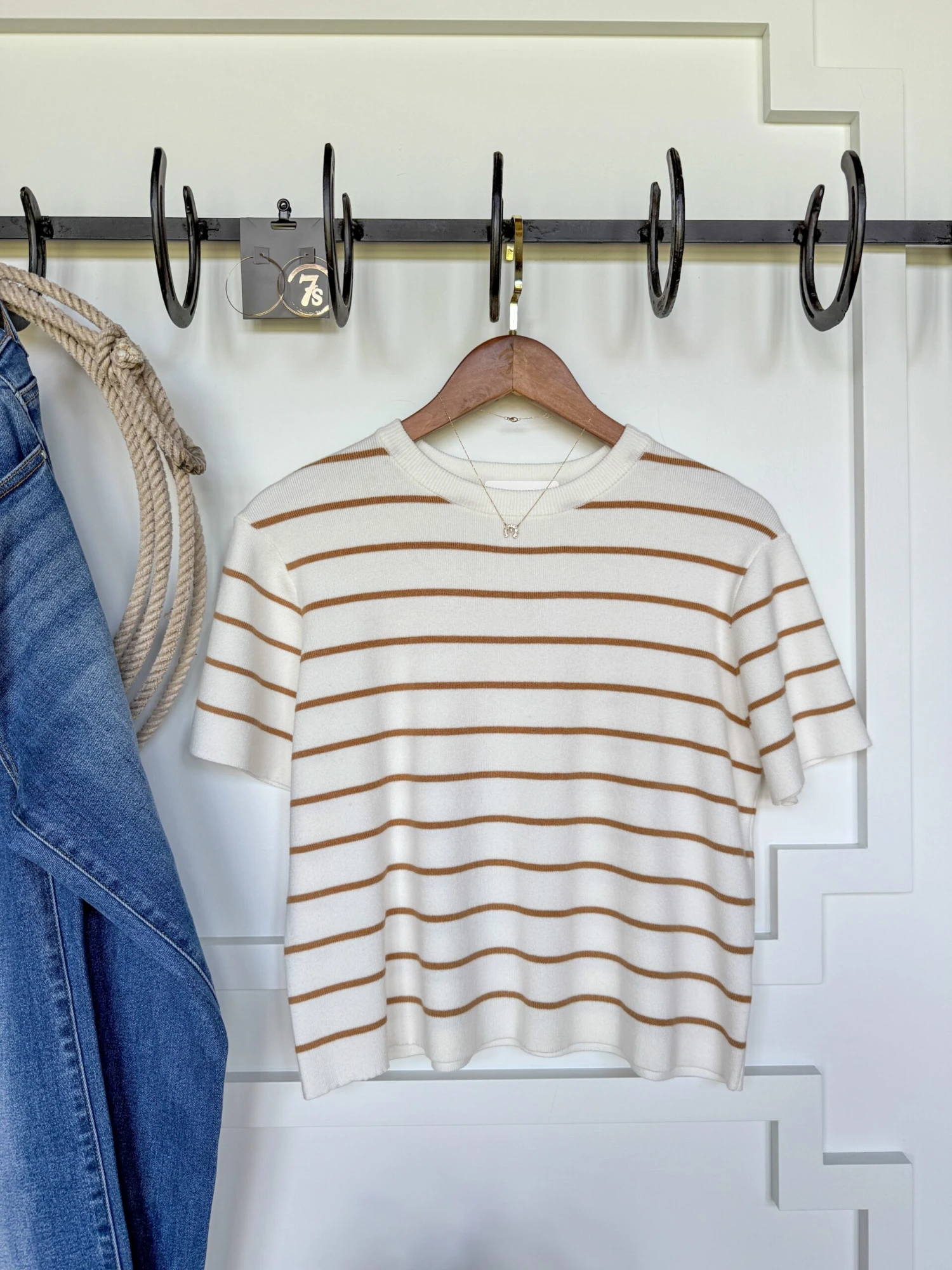 - Striped short sleeve top.