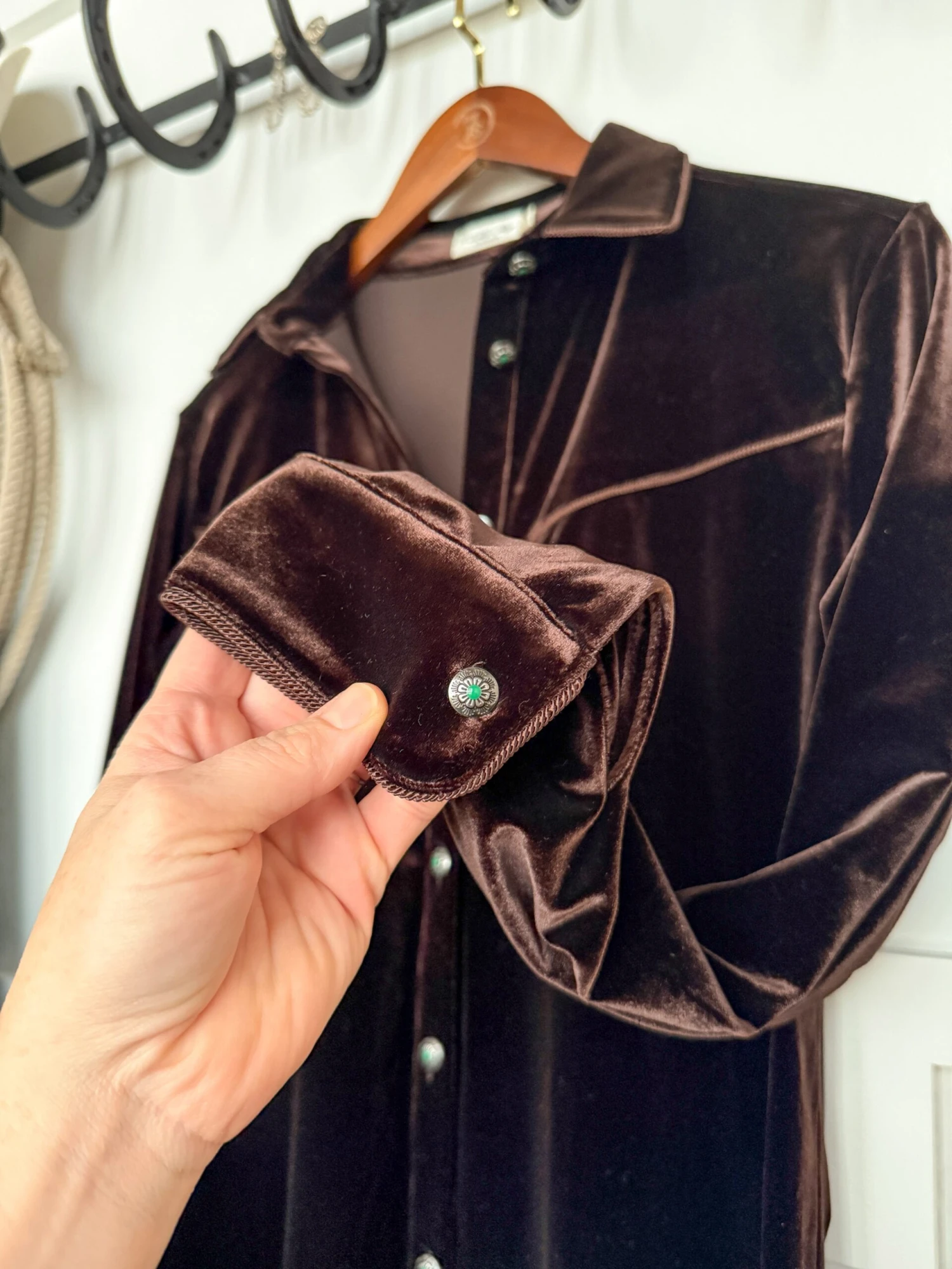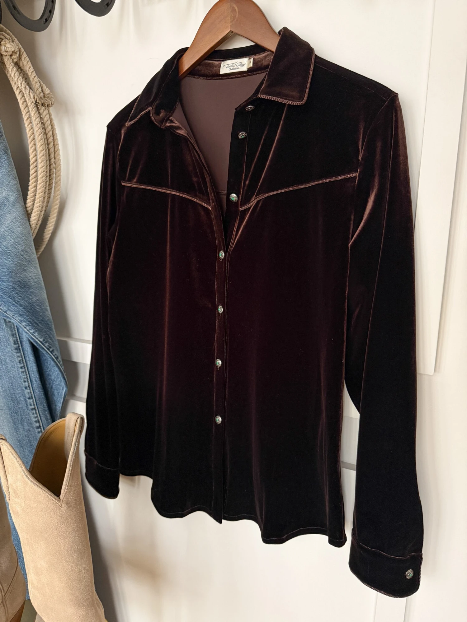 - Espresso velvet long sleeve summary up top.