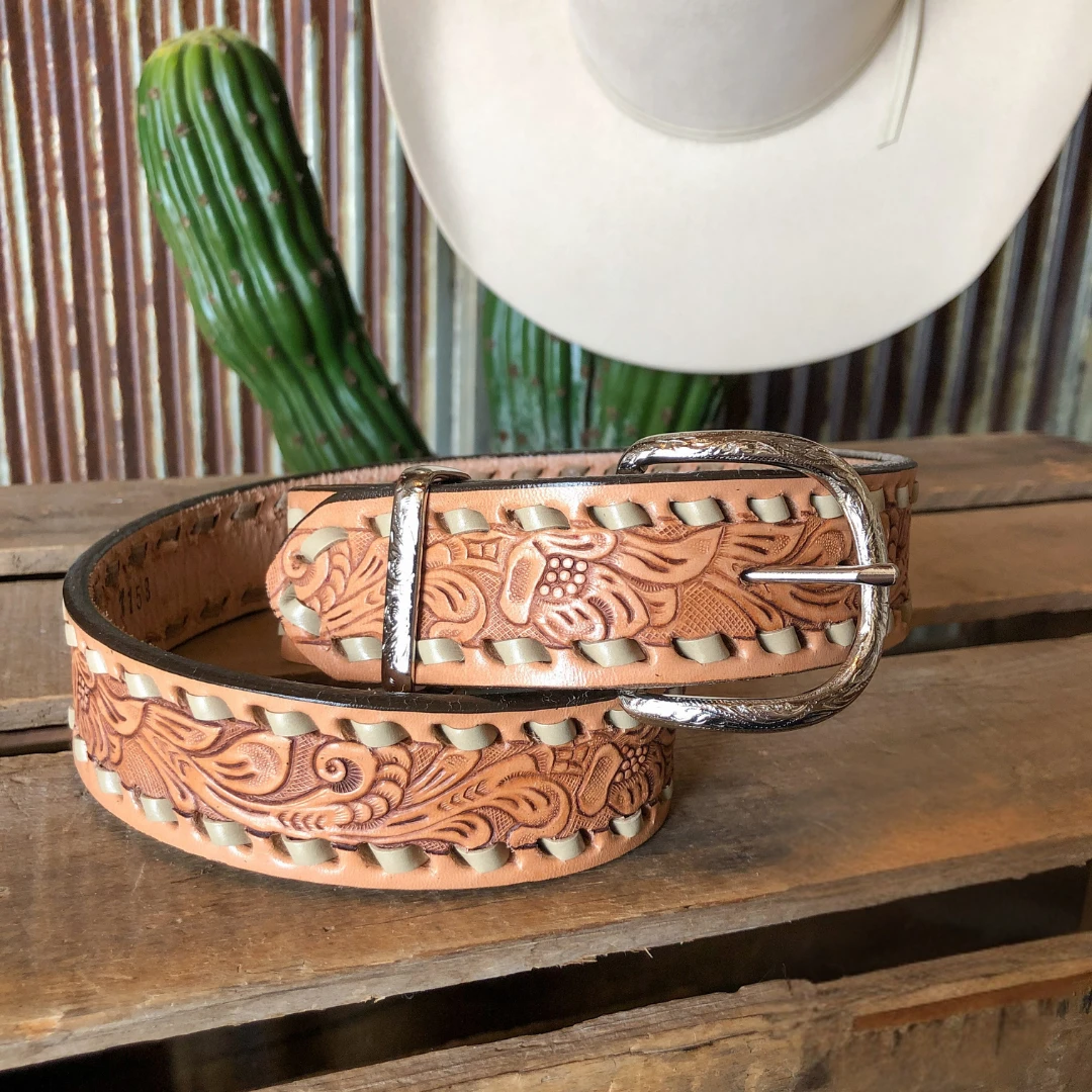 - Western pecan hand tooled leather belt.